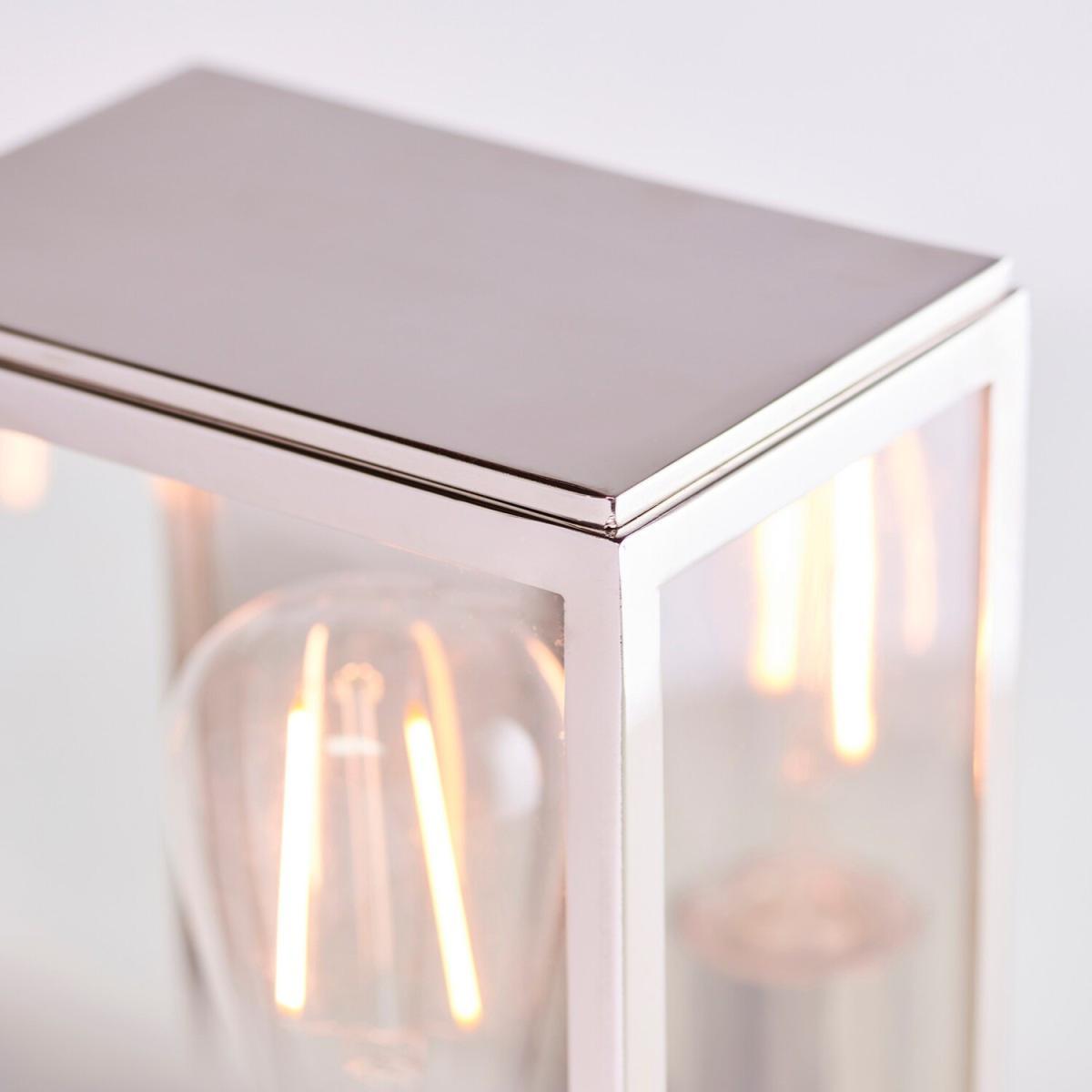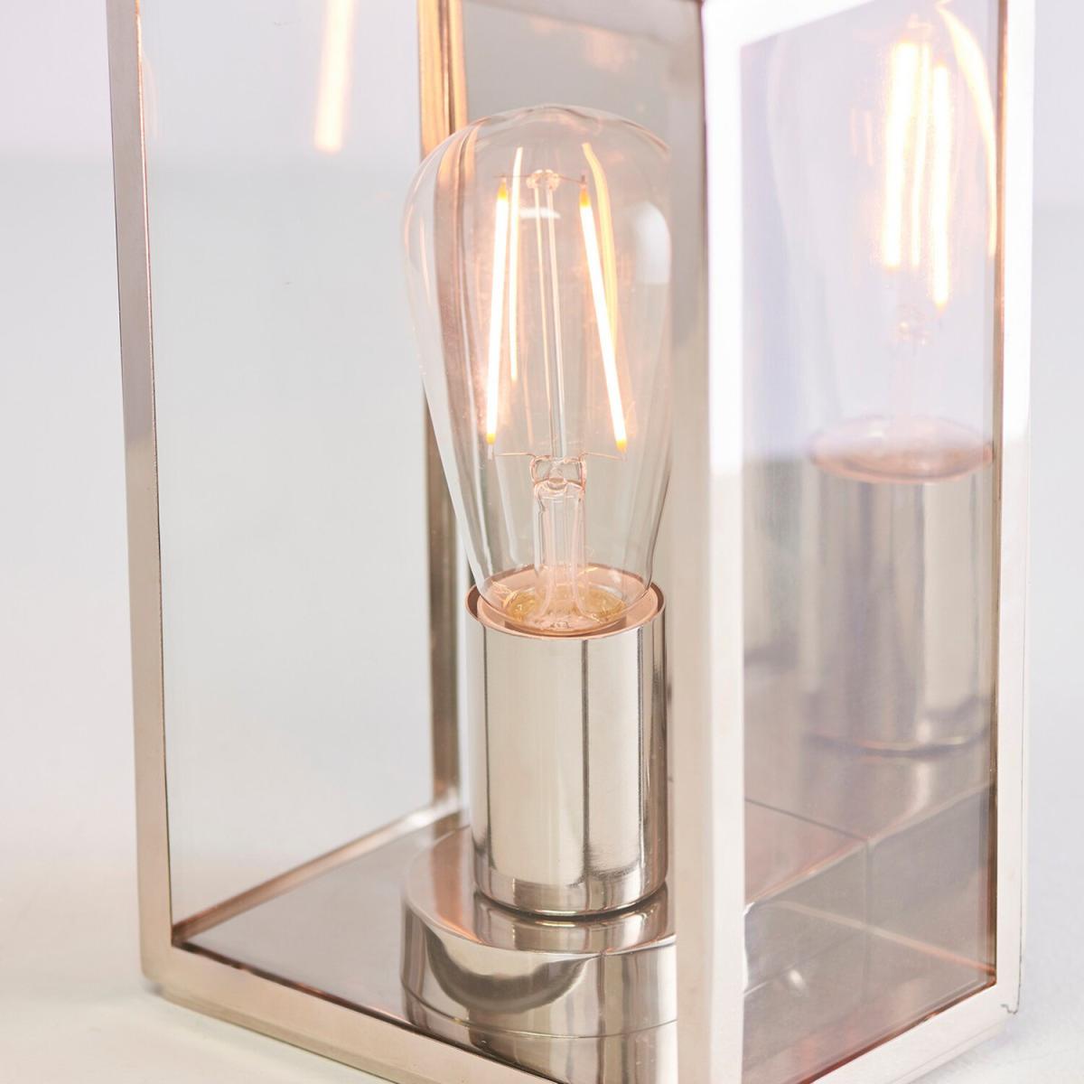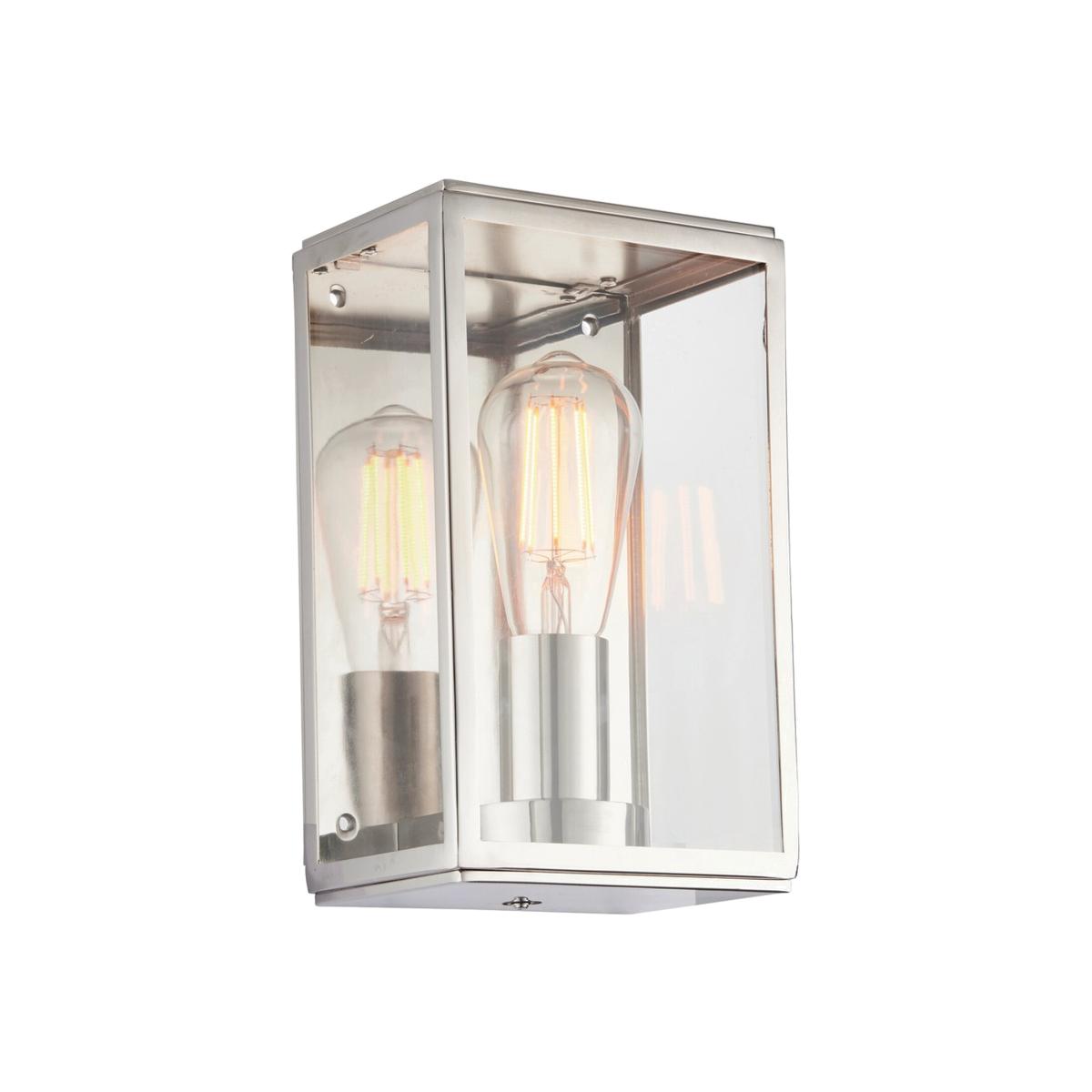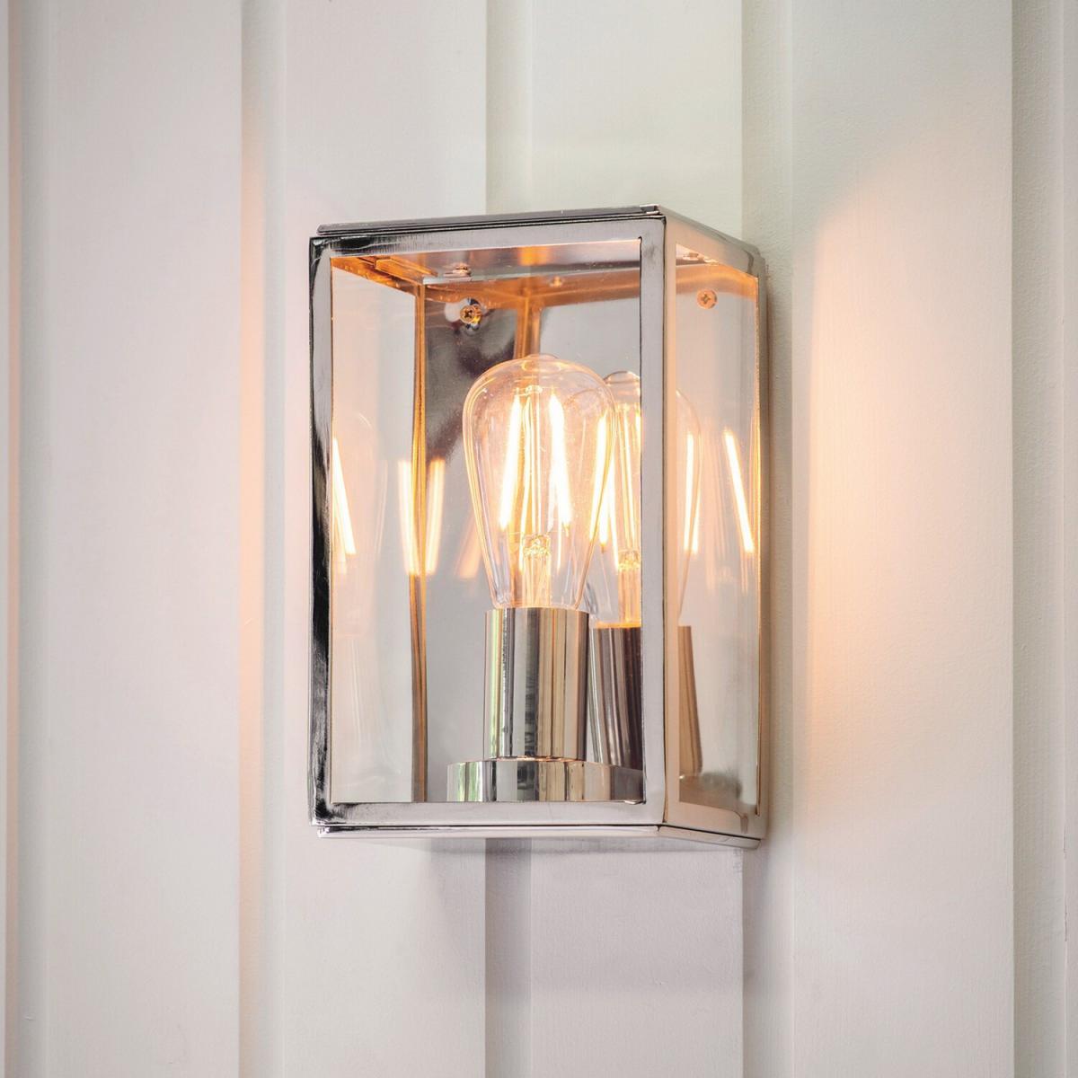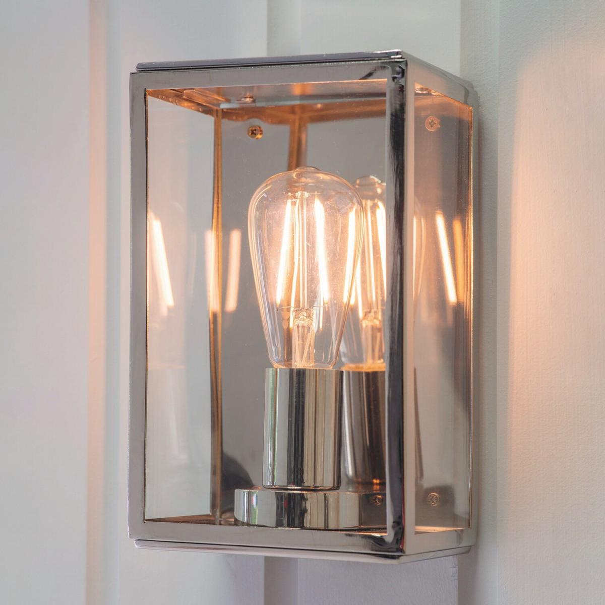 Authentic and timeless, the bright nickel plated this wall light is the perfect compliment for today's relaxed classic interiors. Pair with a vintage style filament LED lamp that is perfectly framed by the subtle metalwork and large clear glass panels.