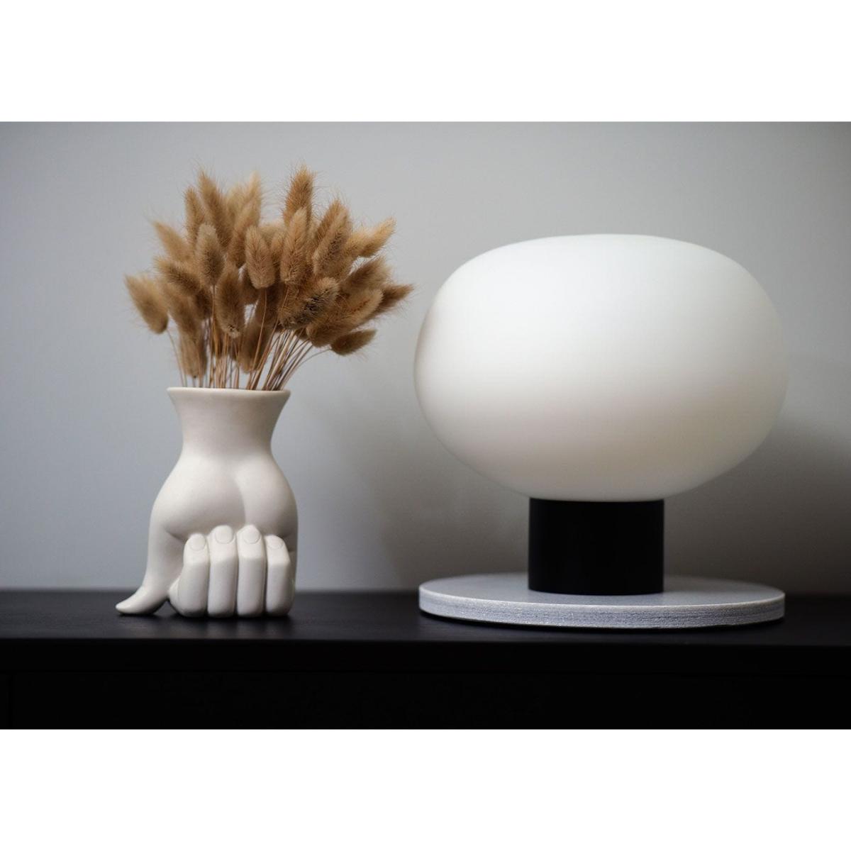 This table lamp is a sleek and versatile piece, perfect for adding a modern touch to both contemporary and minimalist interiors. I love how its understated white glass globe combined with a simple black base allows it to effortlessly blend into various colour schemes and room styles. It works particularly well on side tables, desks, or consoles, providing soft, ambient lighting without overpowering the space. For styling tips, pair it with neutral tones or contrasting textures to make it pop, and consider placing it where its sculptural form can be appreciated-such as on a marble or wooden surface for added sophistication. This lamp’s clean lines make it a reliable choice to create a calm and inviting atmosphere.