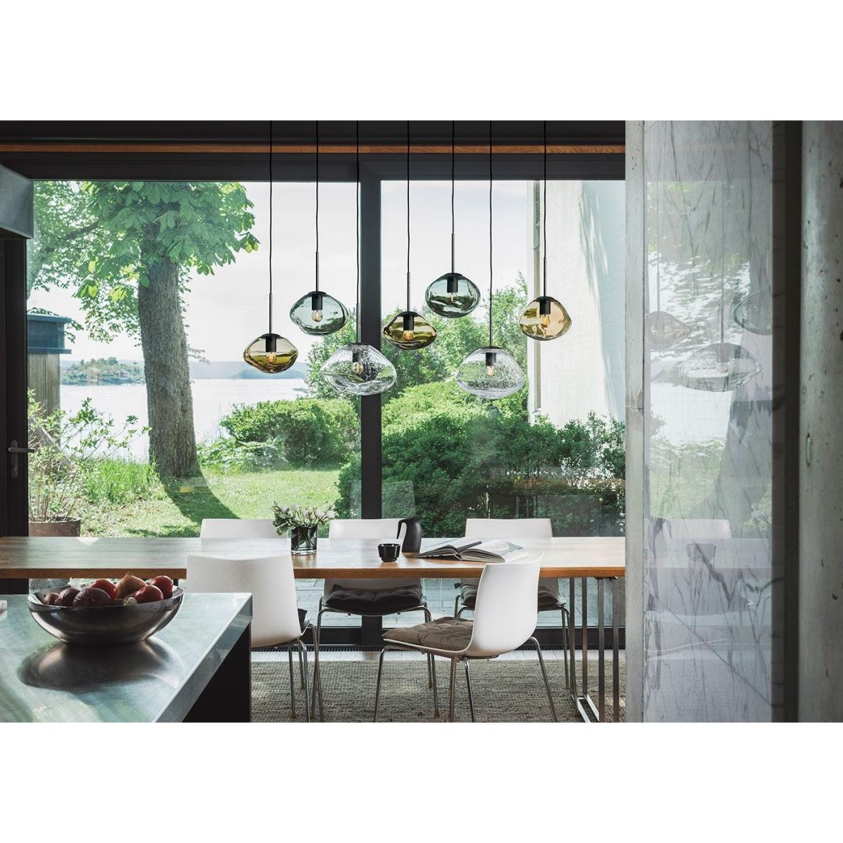 I love this pendant light for its striking combination of coloured glass and modern design. It works particularly well in contemporary or eclectic interiors, where its playful yet sophisticated aesthetic can really shine. The crystal stone gneiss adds an organic texture that complements minimalist schemes, while the varied glass shades create visual interest. Practical styling tips include clustering it over a dining table or kitchen island for added impact, and pairing with neutral or muted walls to allow the glass colours to stand out. It’s versatile enough to work in living rooms, dining areas, or even in a stylish office, bringing a touch of artisan craftsmanship to everyday spaces.