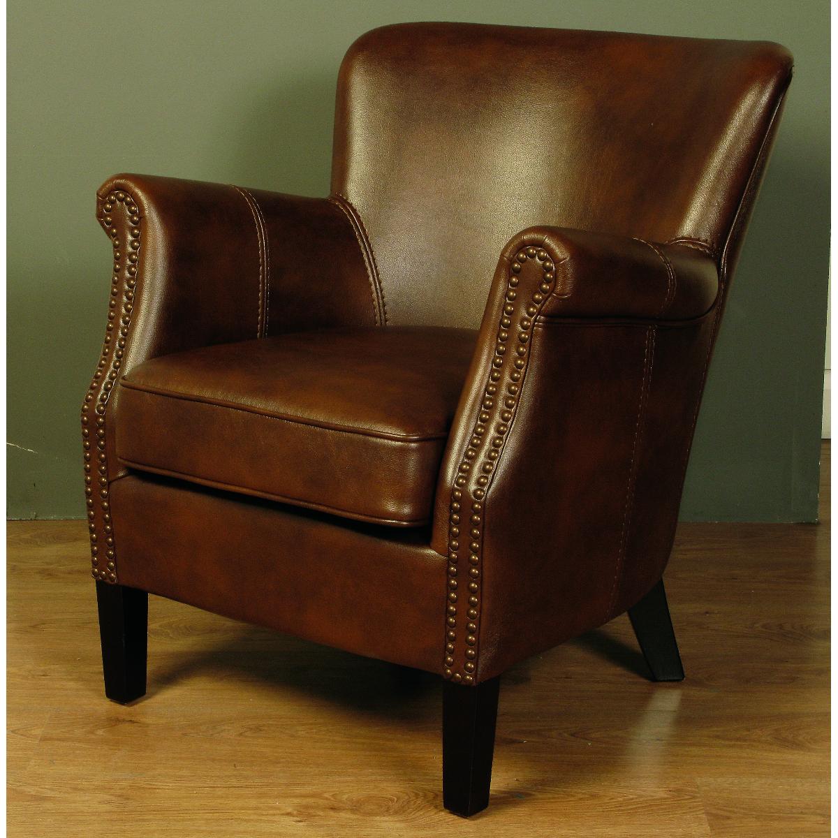 The tan Hadfield chair is a bold, elegant and luxurious addition to your home. This armchair has a classic, traditional design, complete with vintage scrolled arms and sleek stud detailing. It has leather air upholstery for a luxe look and is generously padded for comfort. A stylish and comfortable armchair, perfect for your living room or study. Elegant wingback chair design that gives it a classic, traditional look. Sleek leather air fabric upholstery that gives the chair a plush, luxurious feel. Stylish curvilinear antique design complete with metal studs for a sophisticated touch. Elegant tan finish that will add to the existing décor in your living room. Supported by strong and sturdy legs with a dark brown finish. Classic scrolled arms for comfort and support. Dense and comfortable seat cushion. Also available with burgundy and brown upholstery.