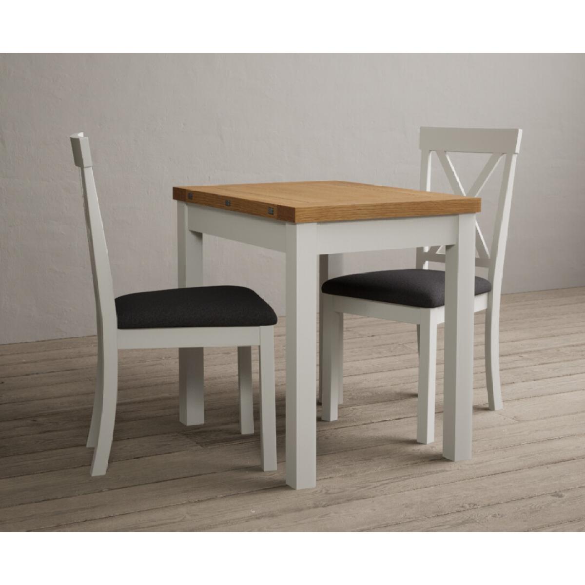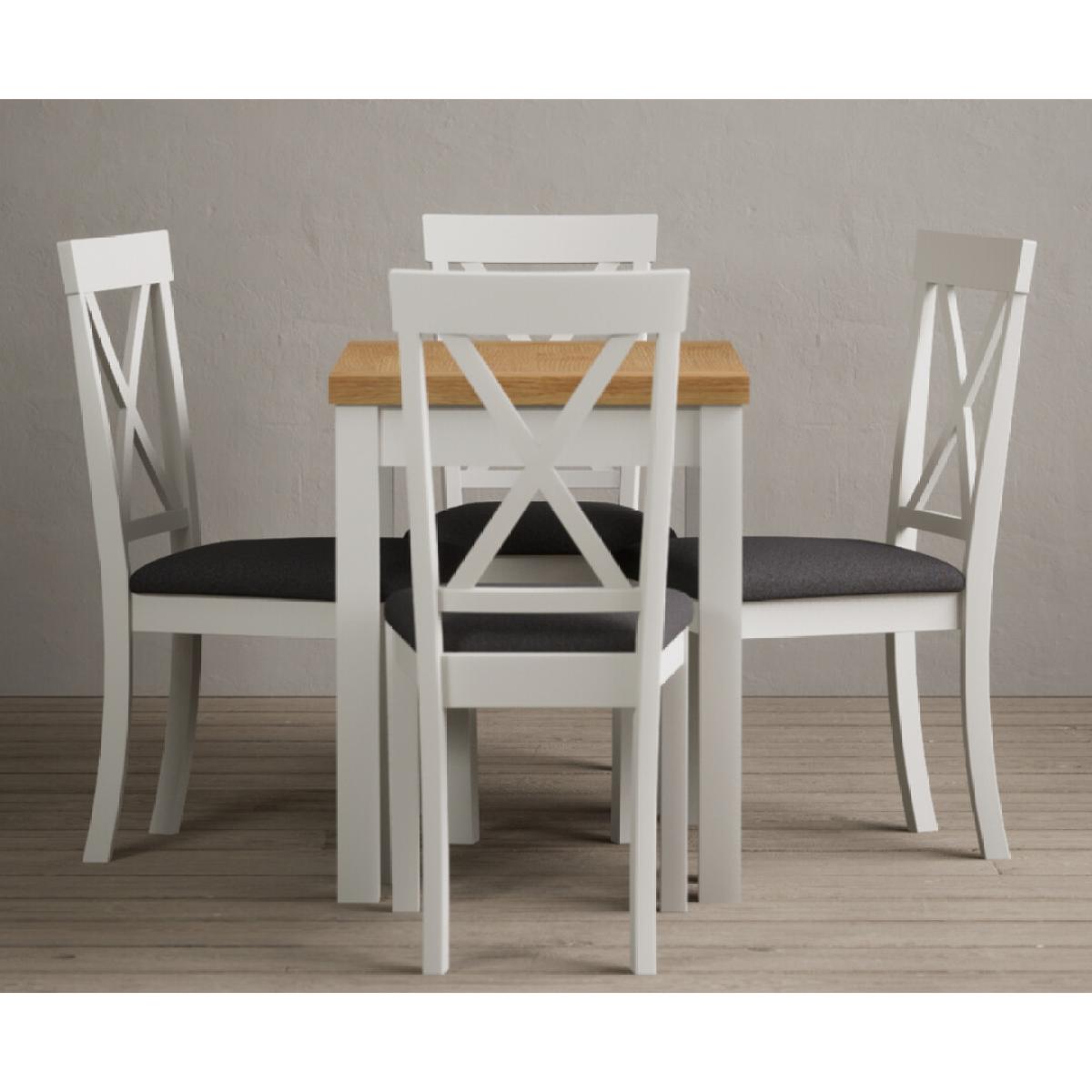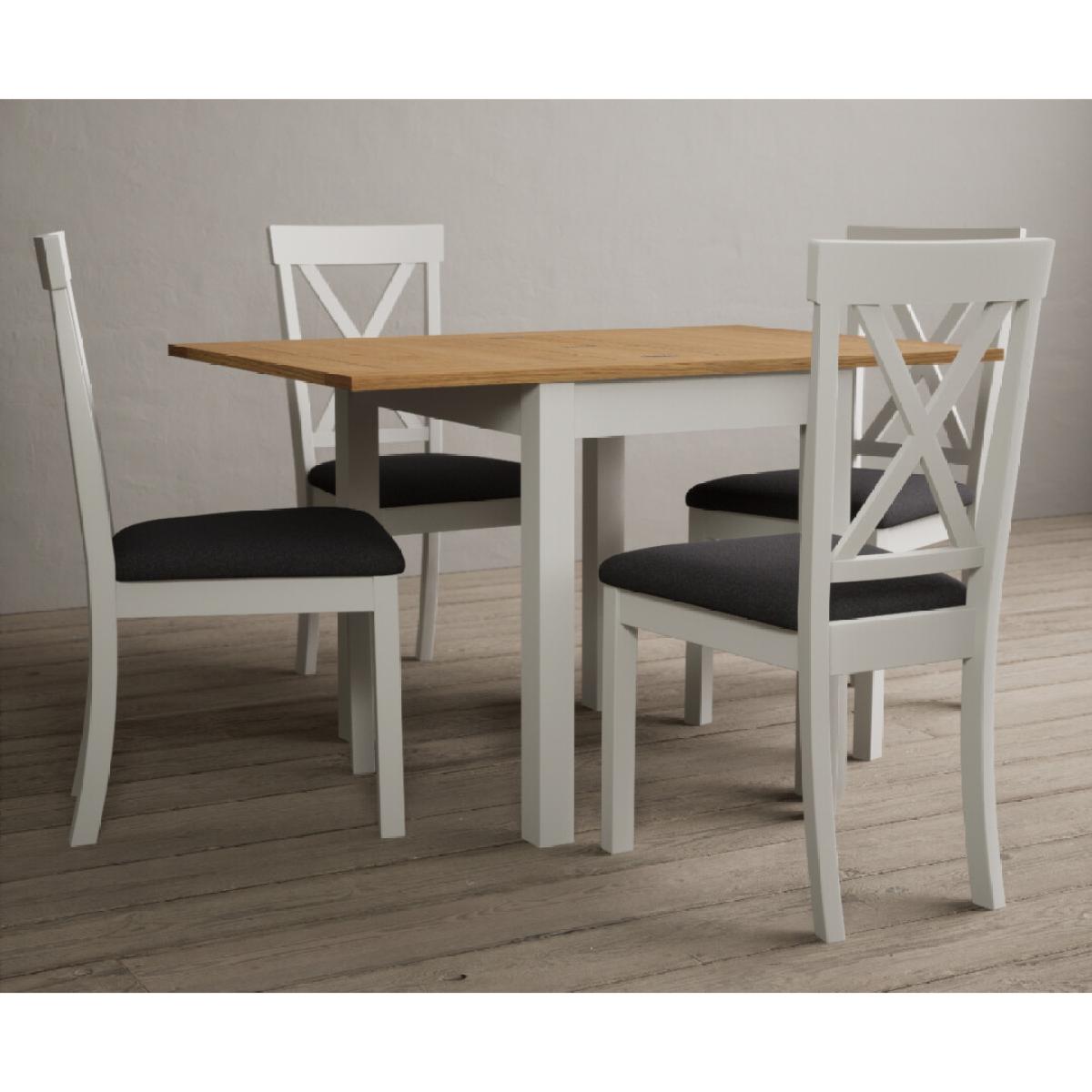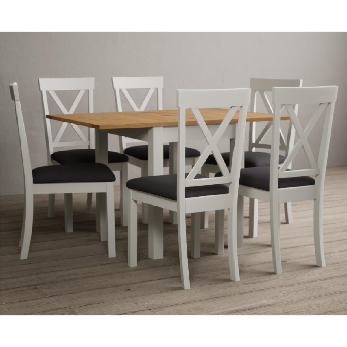 The Hadleigh Oak and Signal White Painted Extending Dining Table with Hertford Chairs is a stylish and versatile extending dining table set.