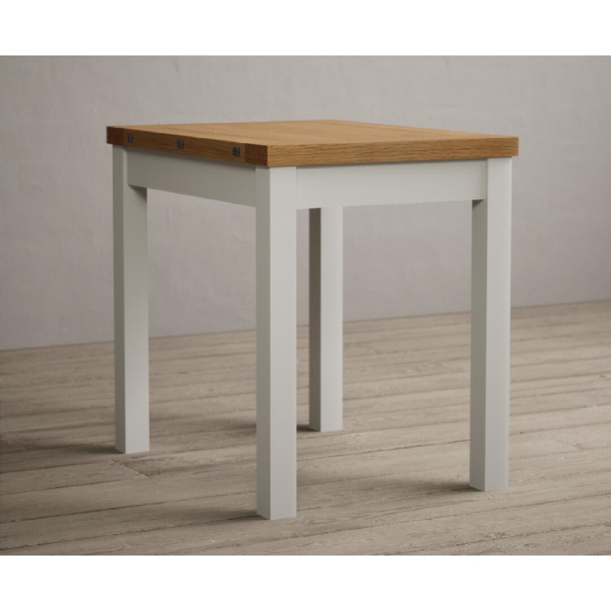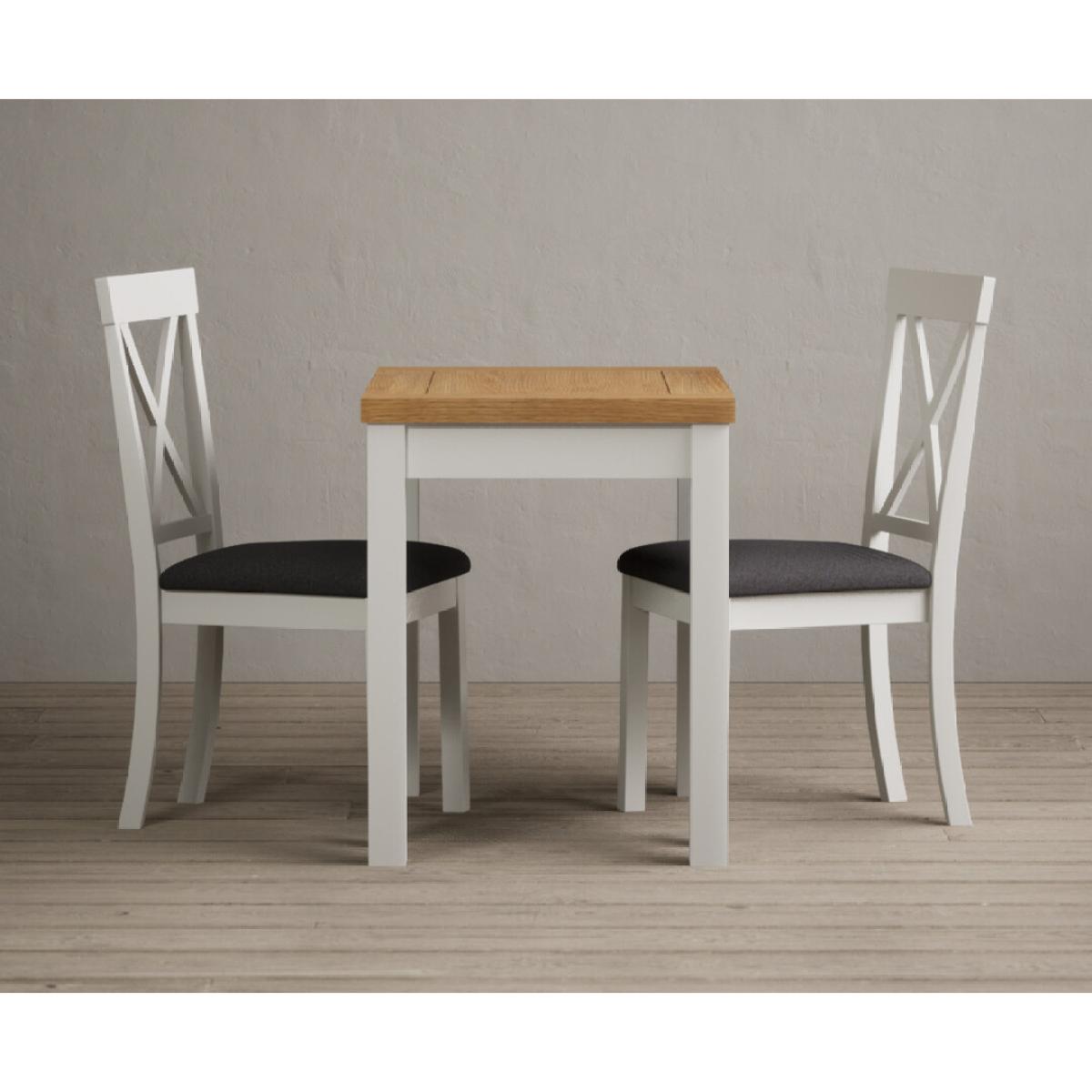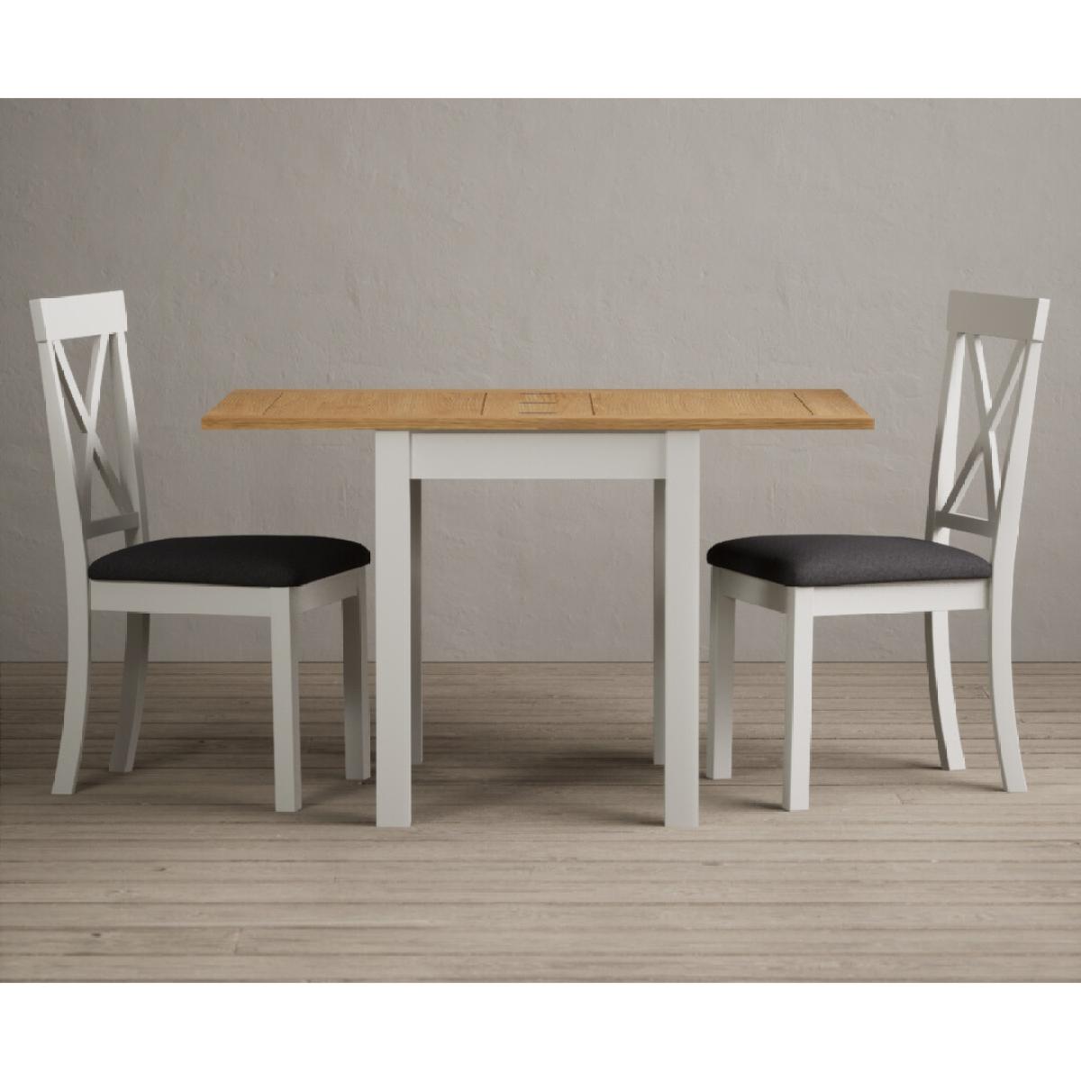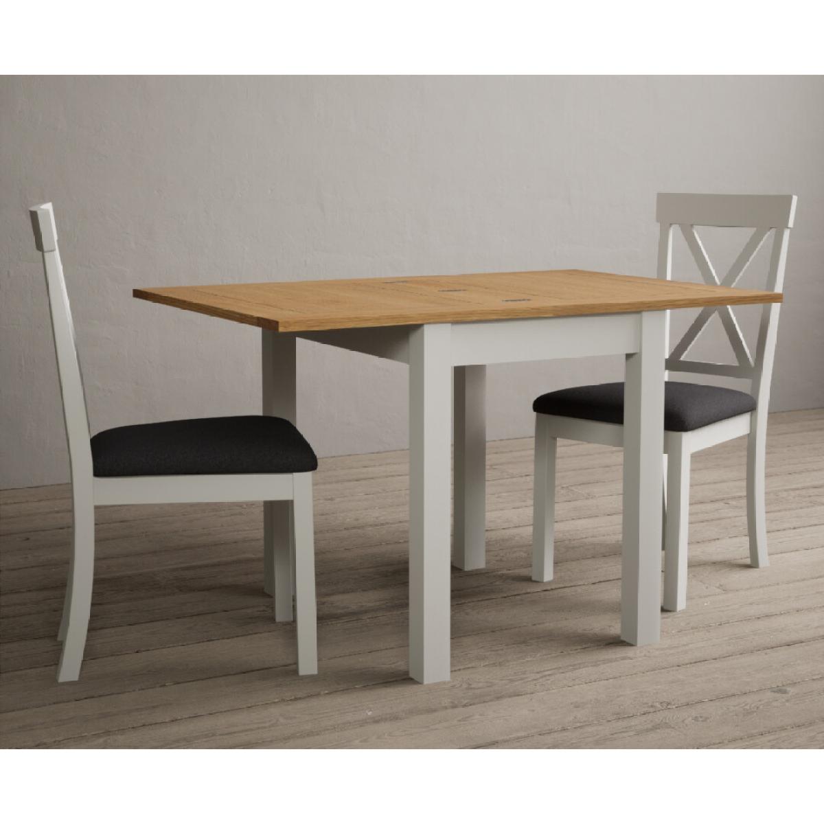 The Hadleigh Oak and Signal White Painted Extending Dining Table with Hertford Chairs is a stylish and versatile extending dining table set.