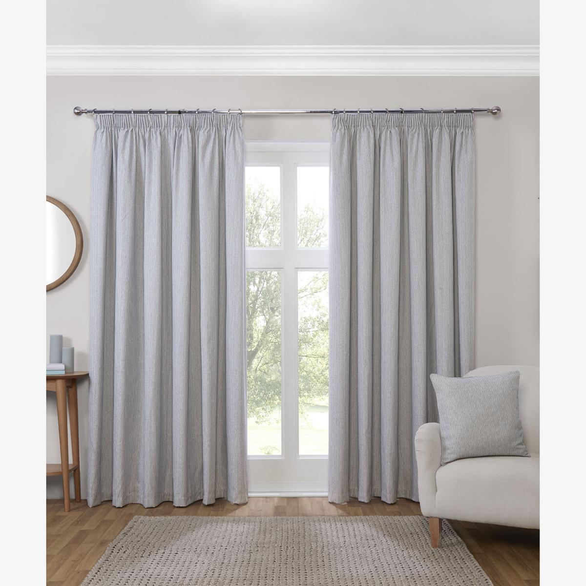 Transform your indoors with the Hadleigh Thermal Curtain. Featuring a stylish woven stripe design in a coastal style, this curtain blends sophistication with practicality. With its thermal blackout construction, it effectively blocks out light and helps regulate room temperature, keeping your space cool in summer and warm in winter.