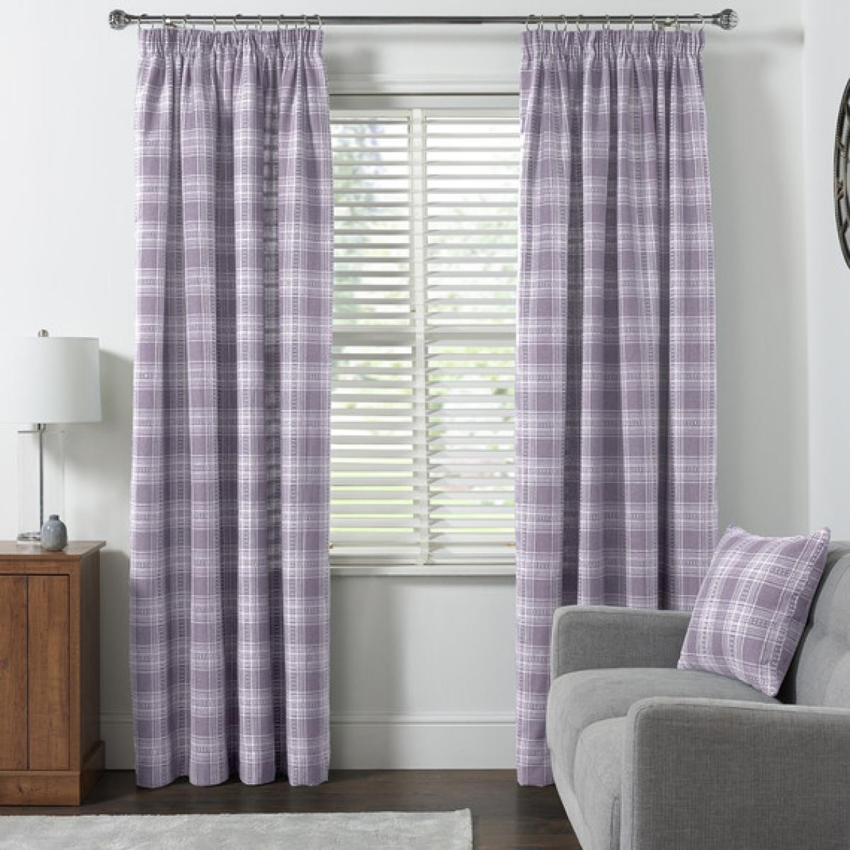 Hadley Check Curtains - Lavendar / 168cm / 183cm