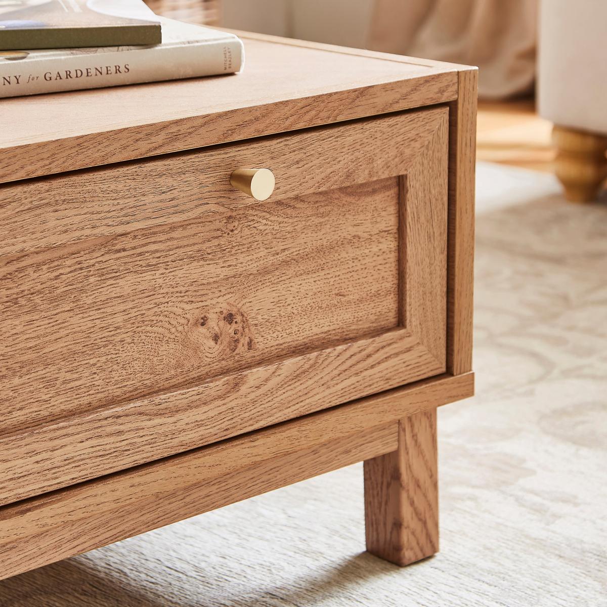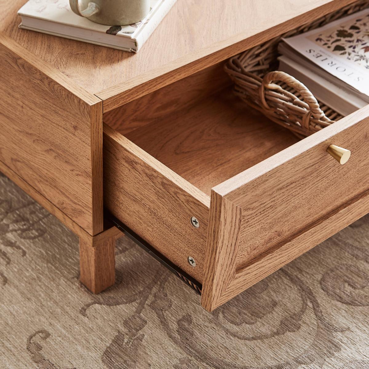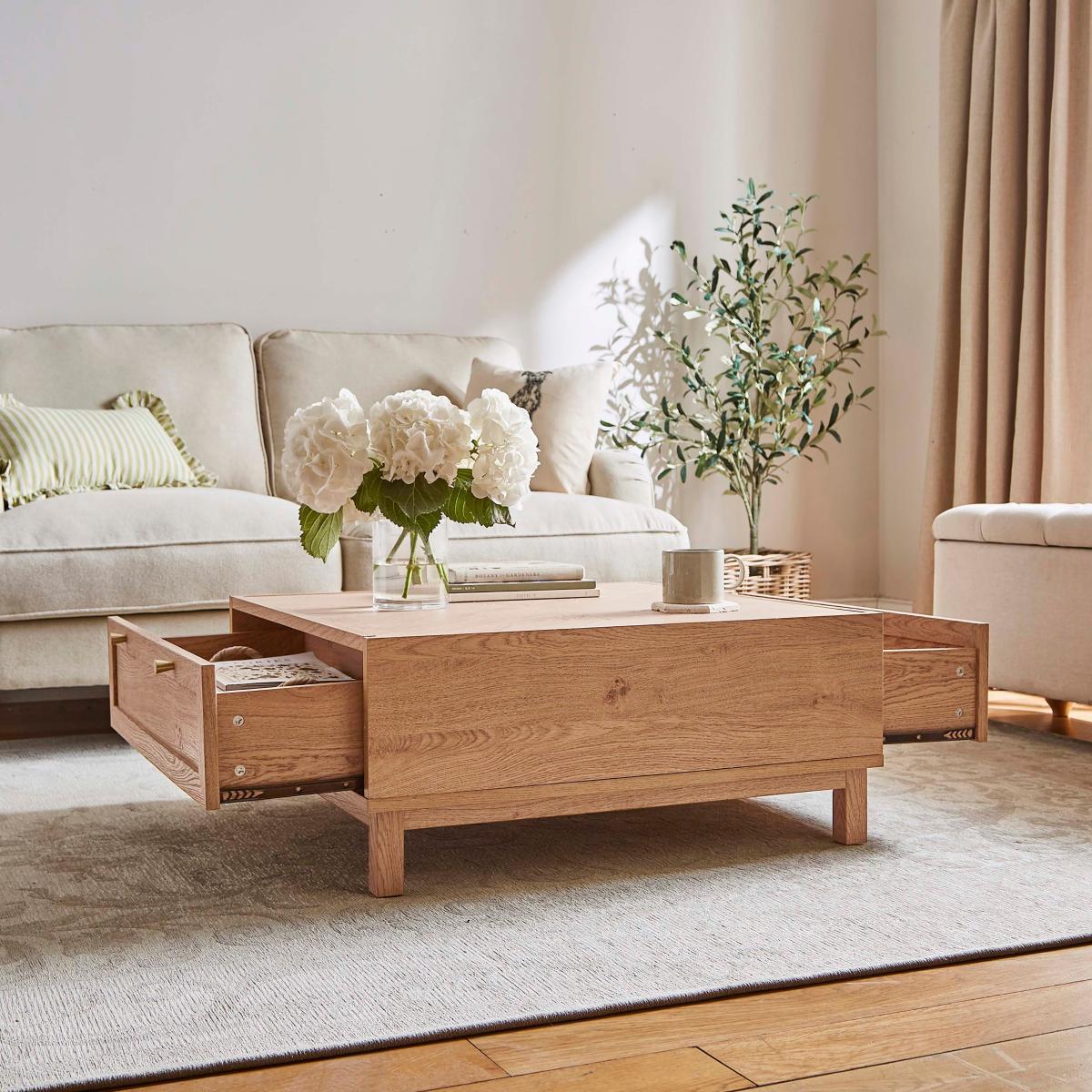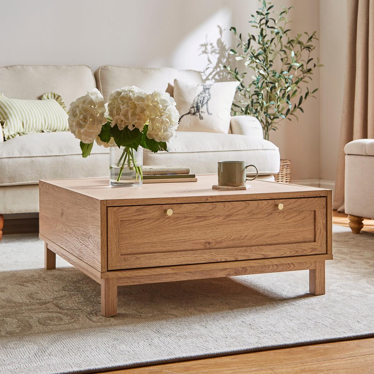 I love this coffee table because of its clean, minimalist design and warm oak finish, which makes it incredibly versatile. It works well in both contemporary and scandinavian interiors, adding a touch of natural warmth to neutral colour schemes. The drawer is a practical feature for keeping remote controls, coasters, or other small essentials nearby, helping to keep the surface clutter-free. For styling, try layering a few curated books or plants on top, and add a cosy tray for organising smaller items. Its sturdy build and understated aesthetic make it a reliable centrepiece that enhances the overall feel of any living space.