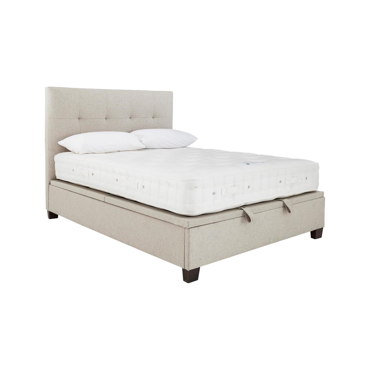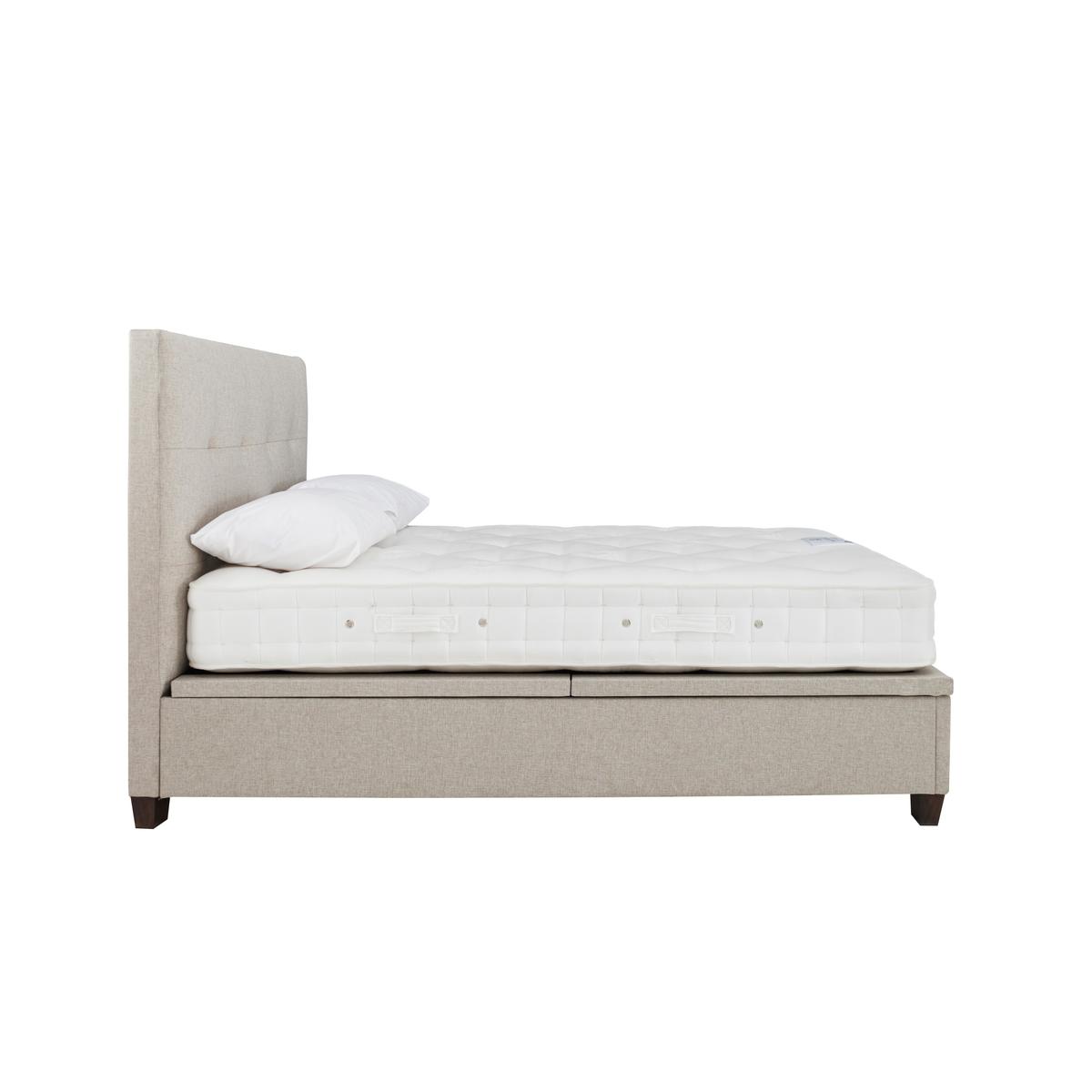 Style meets functionality in our Hadley ottoman bed frame, handcrafted by Kaydian. The look is elegant while the design – with its easy- access large storage space – is very ergonomic. Why you'll love it This stylish ottoman bed frame also gives you extra storage space. Contemporary elegance and luxury. Beautifully upholstered with a well- padded and buttoned headboard. Roomy ottoman storage with effortless hydraulic- assisted piston lift system. Bed frame appears to float above the floor on tapered legs. Ventilated platform top base for cooler nights. Upholstered in a choice of woven fabrics. In double, king and super king sizes. Handcrafted. The Hadley ottoman bed frame is part of the Furniture Village bed collection. What you need to know Mattress sold separately. Please keep hands clear of the mechanism when opening and closing. Clean regularly using a soft brush or vacuum with the curtain attachment. Deal with any spills promptly. Professional cleaning advised for oil- and grease- based stains. Some fabrics can show wear on areas of more use or in direct sunlight.