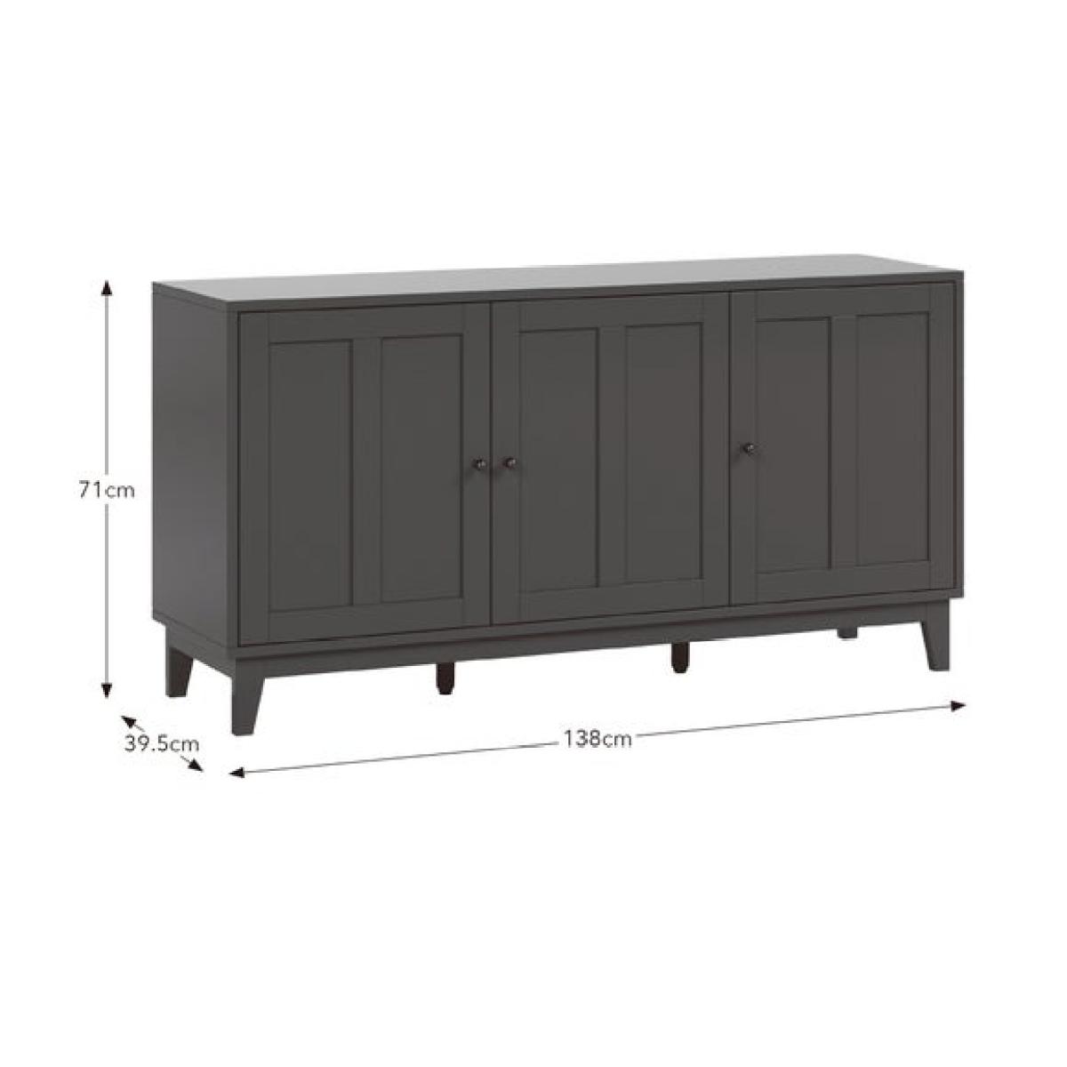 * Wooden sideboard * Ample storage * Painted finish The Hadley sideboard is a stylish and practical storage solution designed to complement modern interiors. It features three doors that open to reveal three spacious shelves, providing ample room for organising dining essentials, décor, or everyday items. The piece is finished with a smooth painted surface for a refined look, combining durability with elegance.