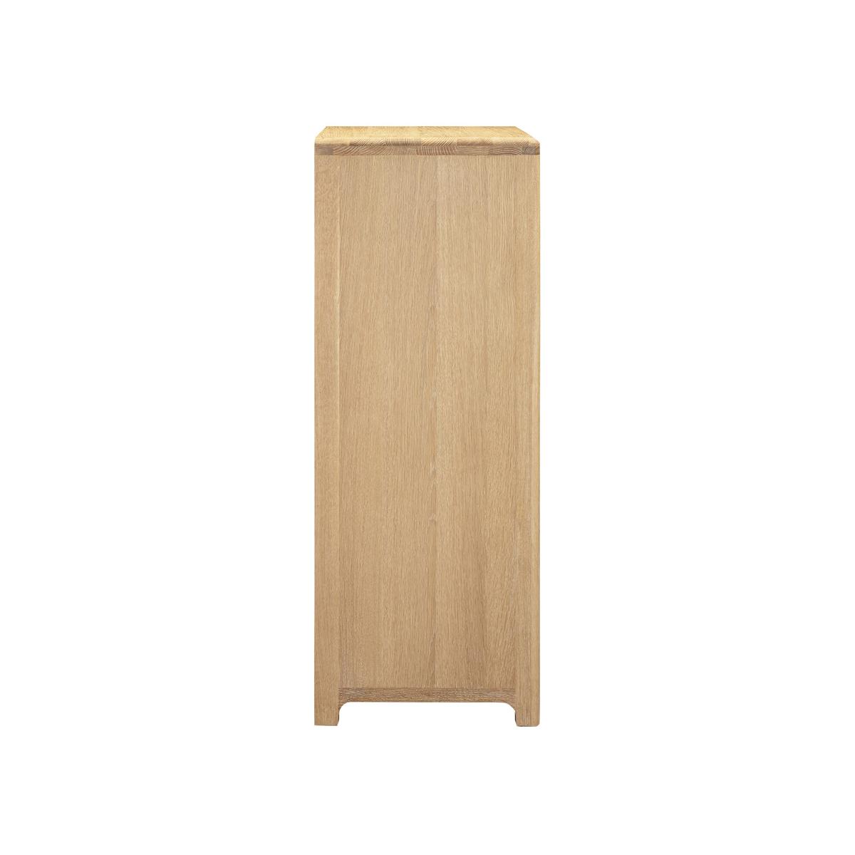 This 2 over 3 drawer oak chest combines practicality with timeless style. Crafted from oak with a natural finish, it showcases the wood’s beautiful grain while bringing warmth and character to any space. The two smaller felt-lined top drawers are perfect for organising smaller items, while the three larger felt-lined drawers below provide ample storage for clothes, accessories, or essentials. With its clean lines and versatile design, this chest is a stylish, functional addition to any room.