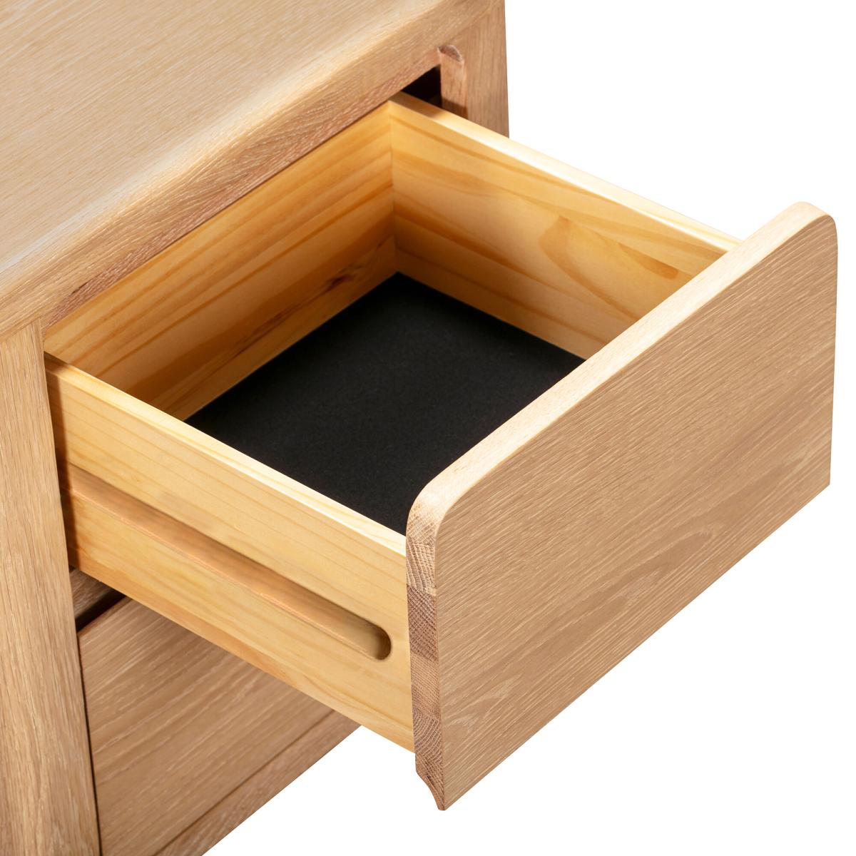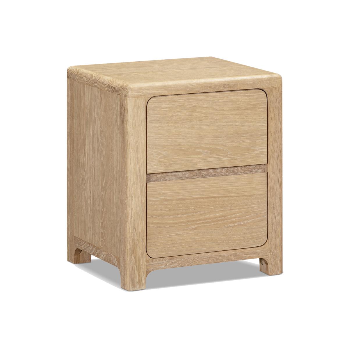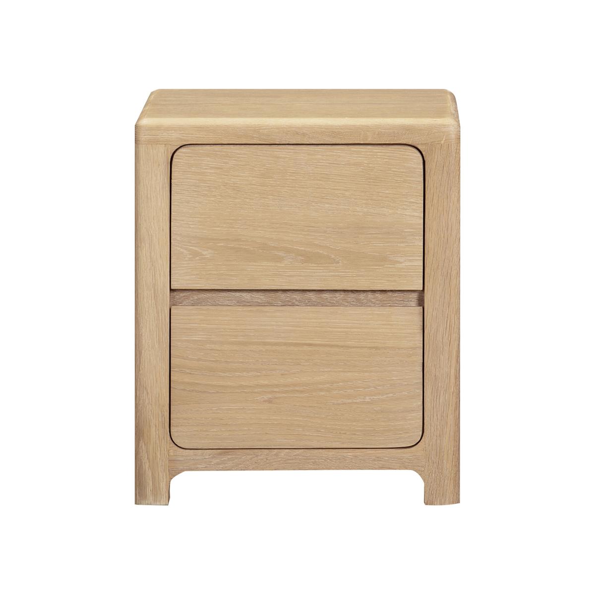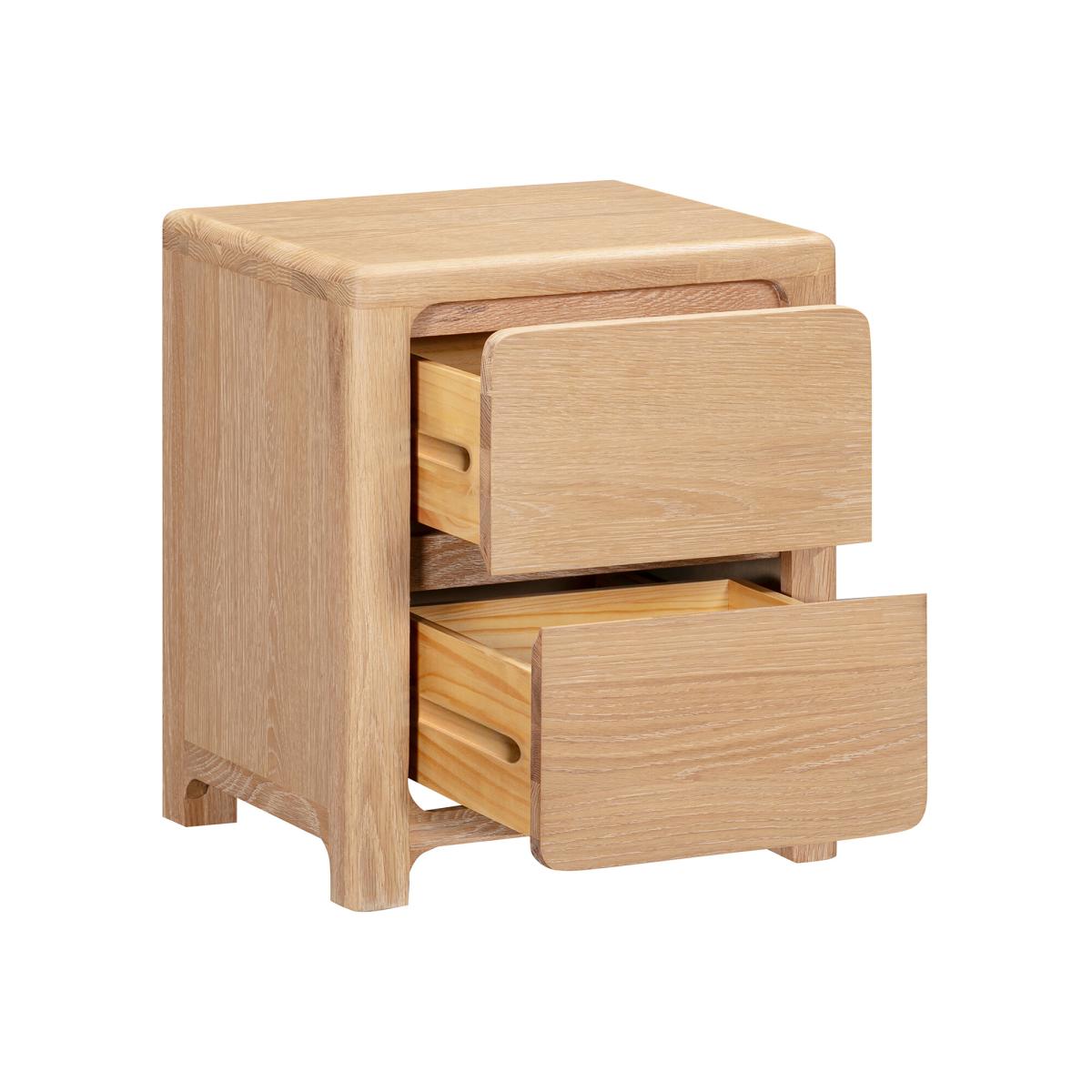 Bring warmth and modern charm to your bedroom with this oak bedside chest. It features two smooth drawers for easy storage and softly rounded corners for a gentle, cosy look. The natural grain of the wood adds character, while the clean lines give it a contemporary feel that suits any space. Perfect for keeping your nighttime essentials close by in style and comfort.