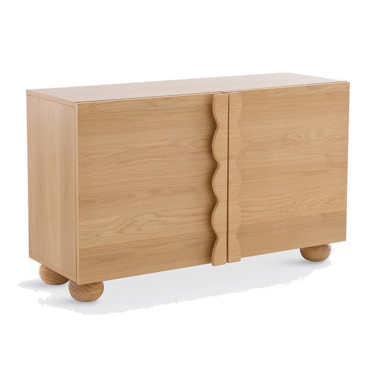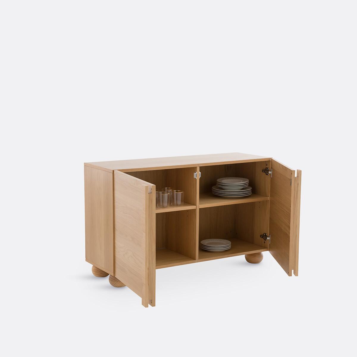 This is Hagop, the 2-door FSC®-certified wooden sideboard designed by our La Redoute Interiors designers. It features a textured ripple effect for the handles and ball feet in solid pine.. Aesthetic and functional, it offers plenty of storage capacity. Product Details • Unit and doors in acrylic varnished oak veneered MDF • Handles in solid pine with nitrocellulose varnish oak veneer • Ball feet in solid pine with nitrocellulose varnished oak finish • FSC® certified woodDimensions. Overall • Width: 120cm • Height: 74cm • Depth: 42cm. Usable dimensions • Compartments : L57 x H29.5 x D38cmDelivery:. Assembly required. Available for home delivery. Note! Please check that all access points are large enough to accommodate your delivery (doors, stairs, lifts). • WOOD FROM SUSTAINABLY MANAGED FORESTS. FSC® certified wood comes from forests that are environmentally, socially and economically well managed. Dimensions and weight of parcel1 parcel • L136.5 x H20 x D69cm. 58kg.