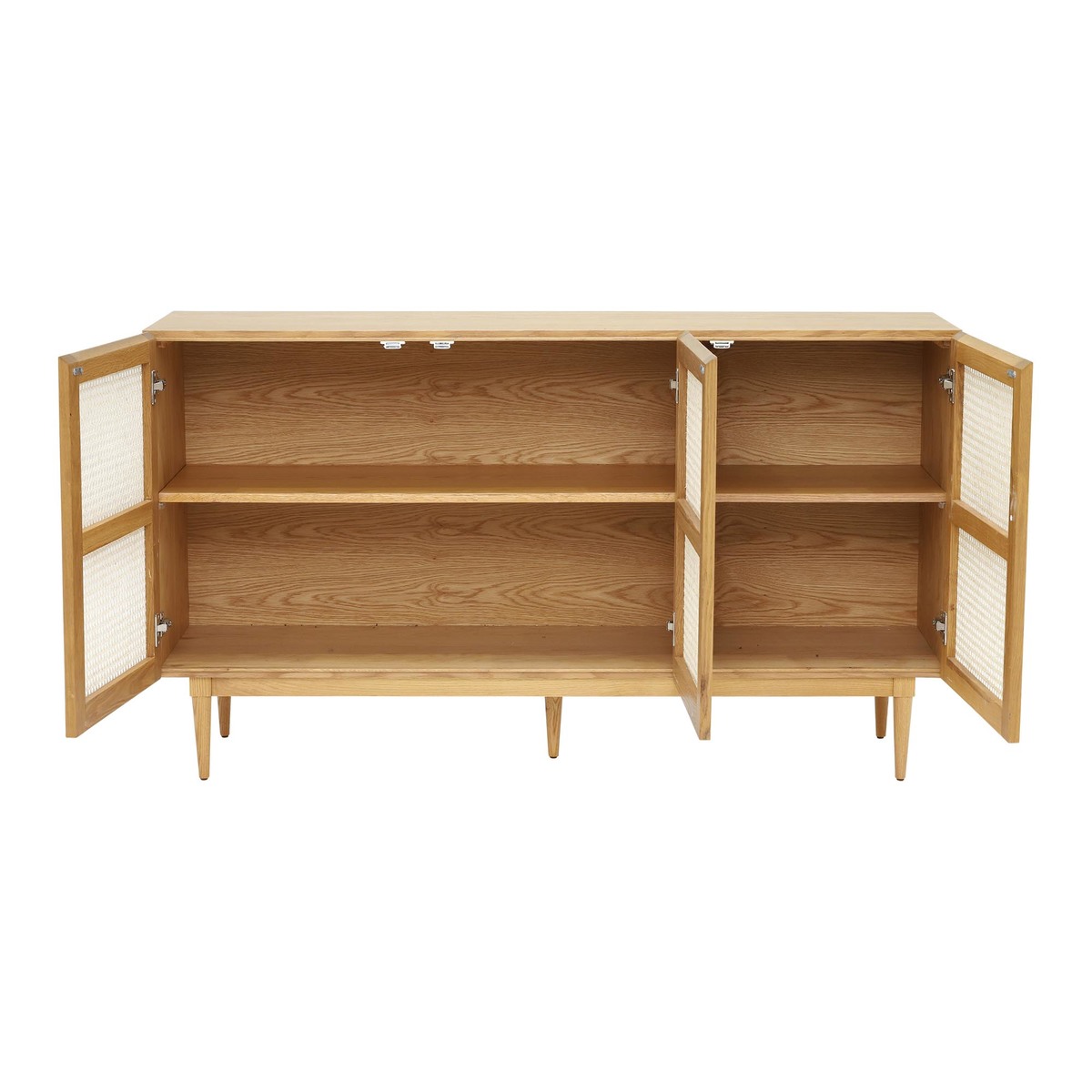 I love this piece for its clean, minimalist design and light, natural finish, which makes it incredibly versatile for various interiors. It works particularly well in Scandi, coastal, or modern boho spaces where natural materials help create a calm and inviting atmosphere. Practical styling tips include using the top surface for decorative items like vases, bowls, or framed photos, while the internal storage is perfect for organising everyday necessities or tableware out of sight. The rattan-style doors add texture and visual interest, so pairing it with soft textiles, neutral tones, and subtle metallic accents will enhance its appeal without overwhelming the room.