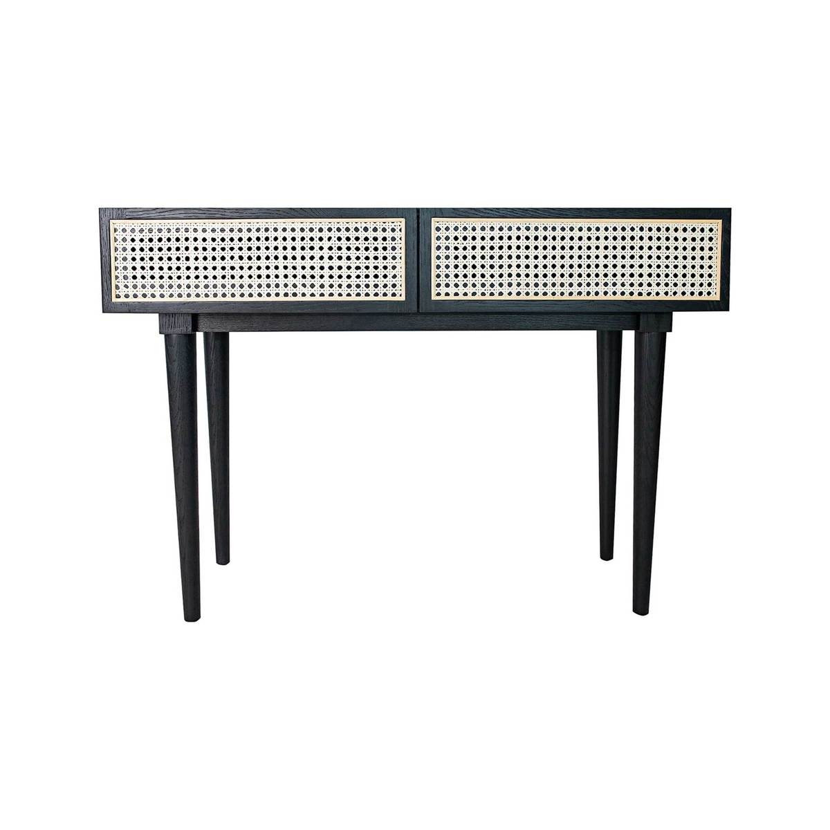Tap into the must-have rattan trend of the moment with the Hague console table in black, featuring beautifully handwoven wicker drawer fronts set against smart stained wood. Guaranteed to capture your guests’ attention in the hallway, living room and beyond, this console table has an incredibly distinctive look that juxtaposes black oak and natural cane for a modern take on a vintage classic. The table’s slim proportions are neat and refined, with space inside and on top to keep your daily essentials easily at hand. However you choose to style it, the Hague will not disappoint. Also available in natural for a softer touch.