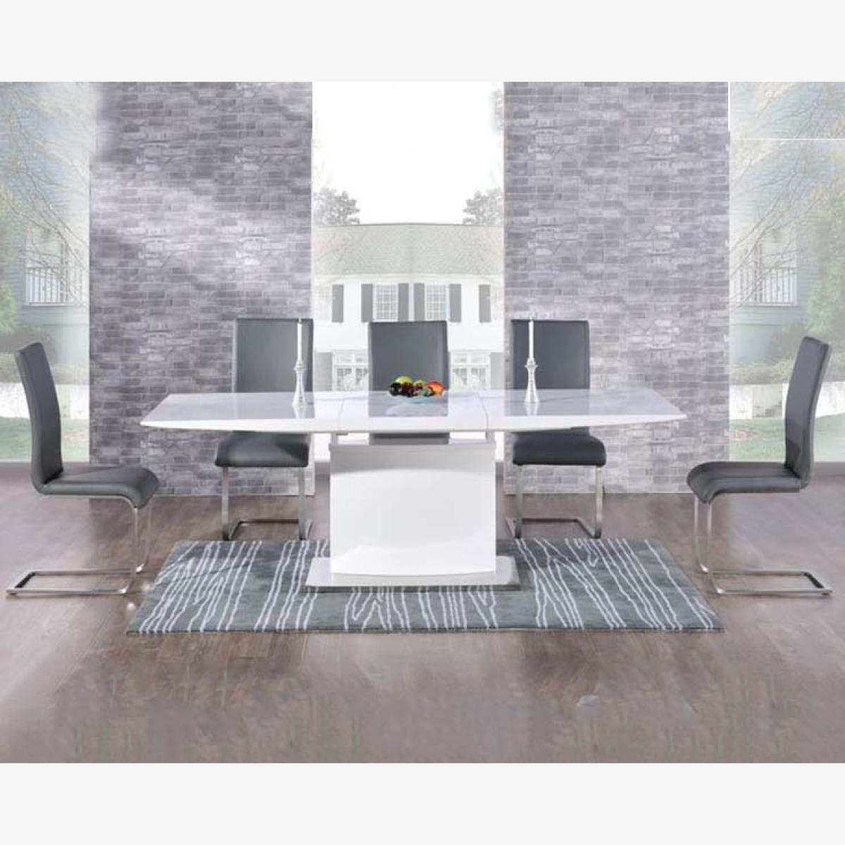 Hailey 160cm White High Gloss Extending Dining Table With 6 Grey Malaga Chairs