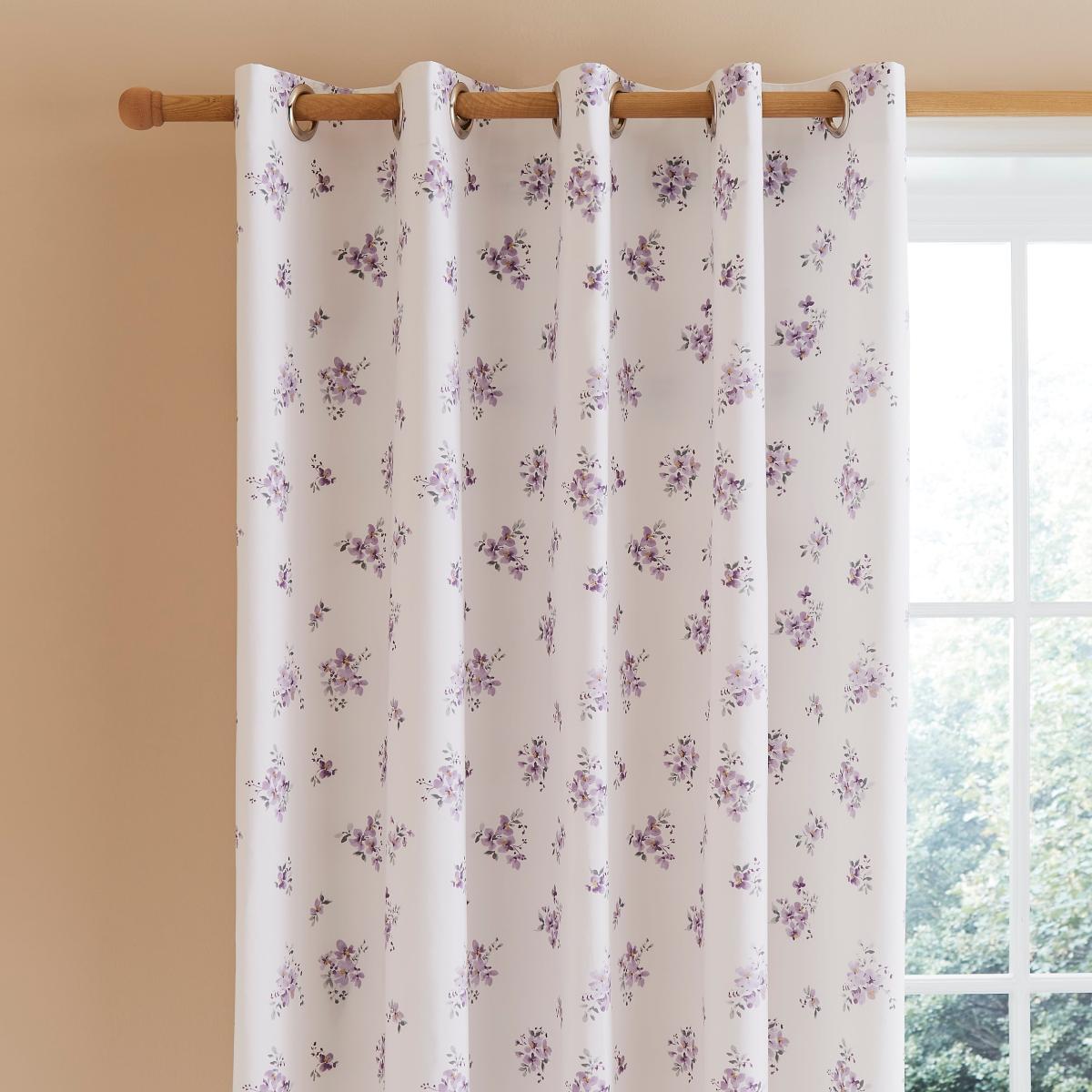 Hailey Ditsy Mauve Blackout Eyelet Curtains White/Purple