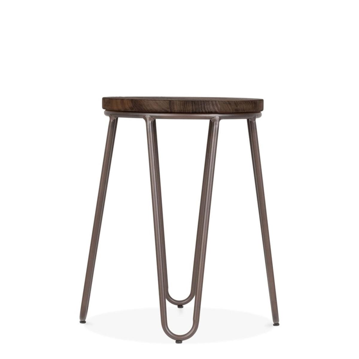 Hairpin Low Stool, Elm Wood & Rustic Seat Colour: Dark Wood Seat