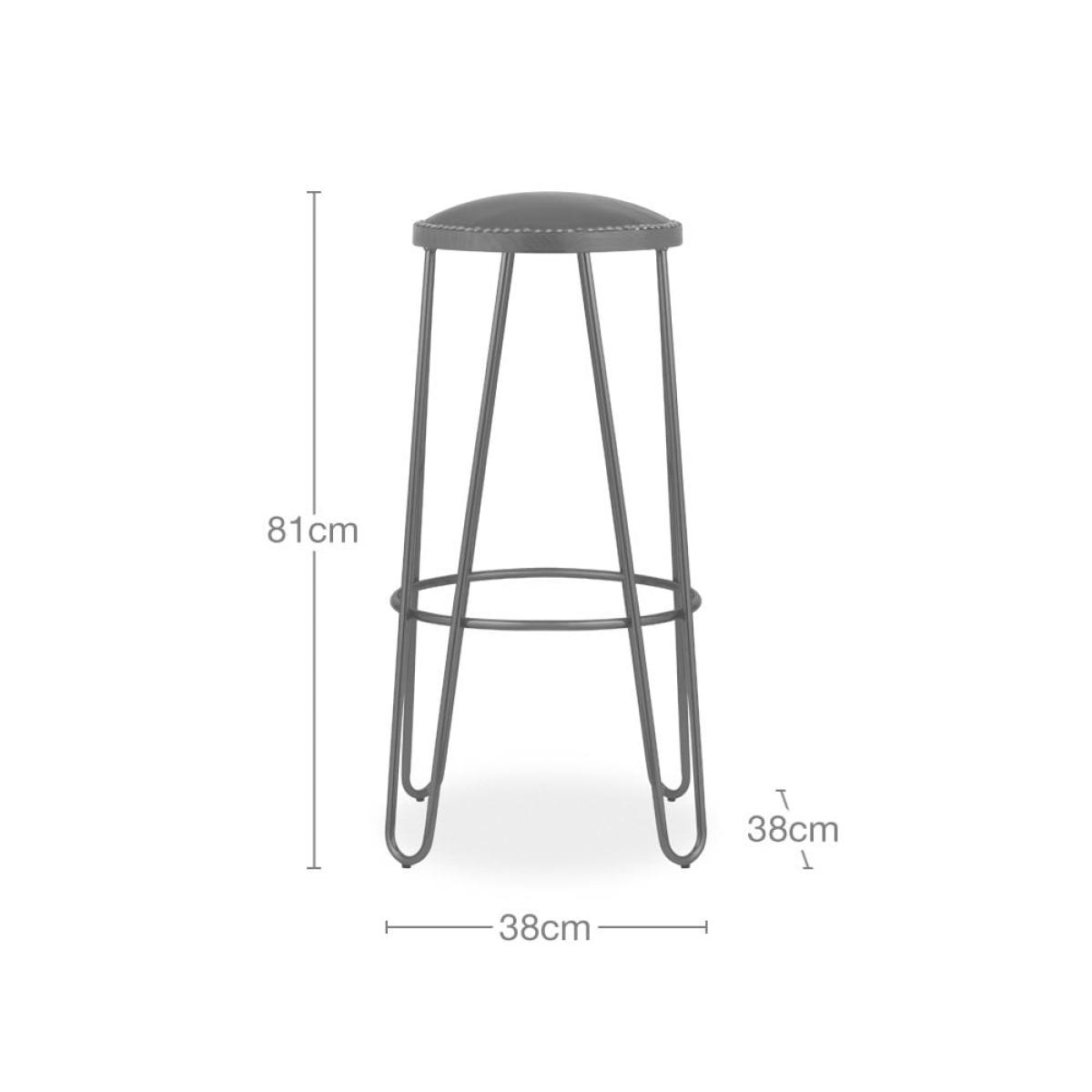 I really like this metal bar stool for its sleek, modern appeal and versatility. The black studs add subtle detail that elevates its industrial style, making it suitable for both contemporary and minimalistic interiors. It works well in kitchens with open-plan dining areas, home bars, or even creative workspaces. To style it effectively, consider pairing with other monochrome or textures that contrast because the black finish provides a great neutral base. For practical tips, opt for a seat cushion or throw in some colourful textiles to soften its look if used in more casual settings, and ensure the height complements your breakfast bar or counter for comfortable seating. This stool's straightforward design makes it a flexible choice that can effortlessly blend into various interior styles.