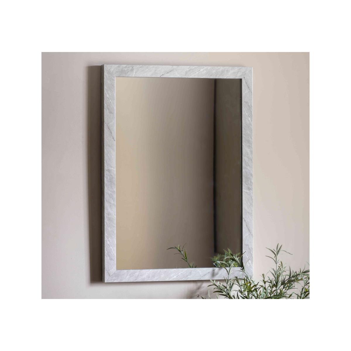 Enhance your decor with this stunning rectangle mirror. We love its gorgeous marbled frame and the way it instantly makes any space feel bigger. Why you'll love it A rectangle mirror with a bold silhouette. Available in gorgeous marbled grey or marbled white. Unique marble finish is perfect for glam style lovers. Made with care. What you need to know For indoor use only. Dimensions Height: 77 cm (31 in). Depth: 3 cm (2 in). Width: 57 cm (23 in).