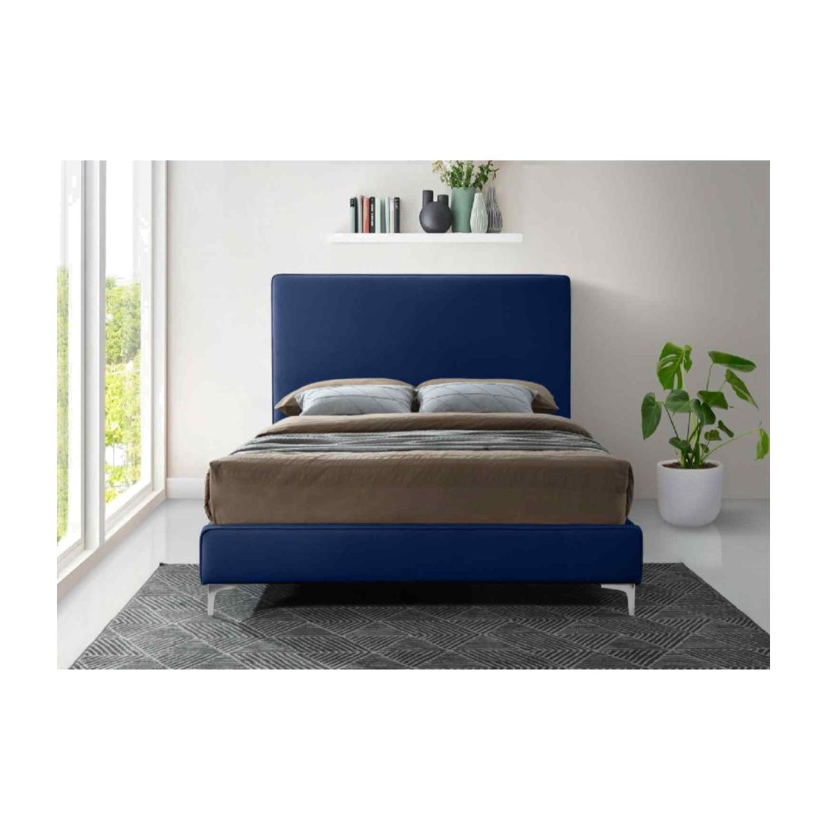 Elegant and beautiful, this bed frame oozes the look of simplicity yet detailed precision, hand crafted in the UK. Featuring pipped headboard and footend with sleek upholstered panels, a deep foam padded headboard and hand carved and stylish metal feet. Quality solid straight slats improve comfort and mattress lifespan. The slats are manufactured with a solid construction for superb durability. The headboard features a contemporary squared design with deep padding. The bed is upholstered in a choice of quality colours with options to suit all decors. The design is finished off with stylish hand carved, chrome metal feet which have been carefully constructed.