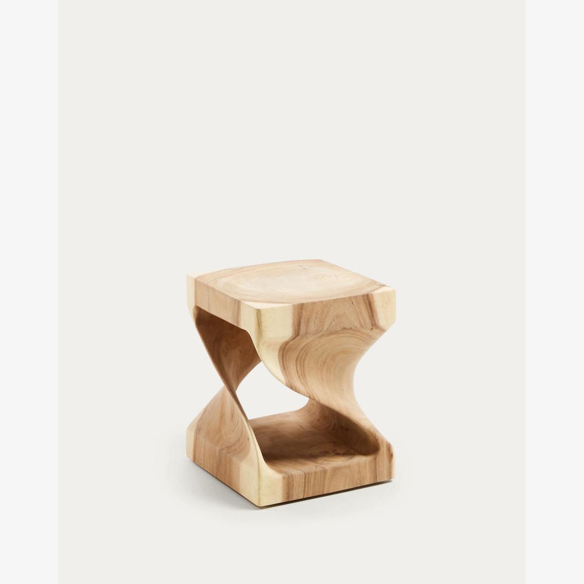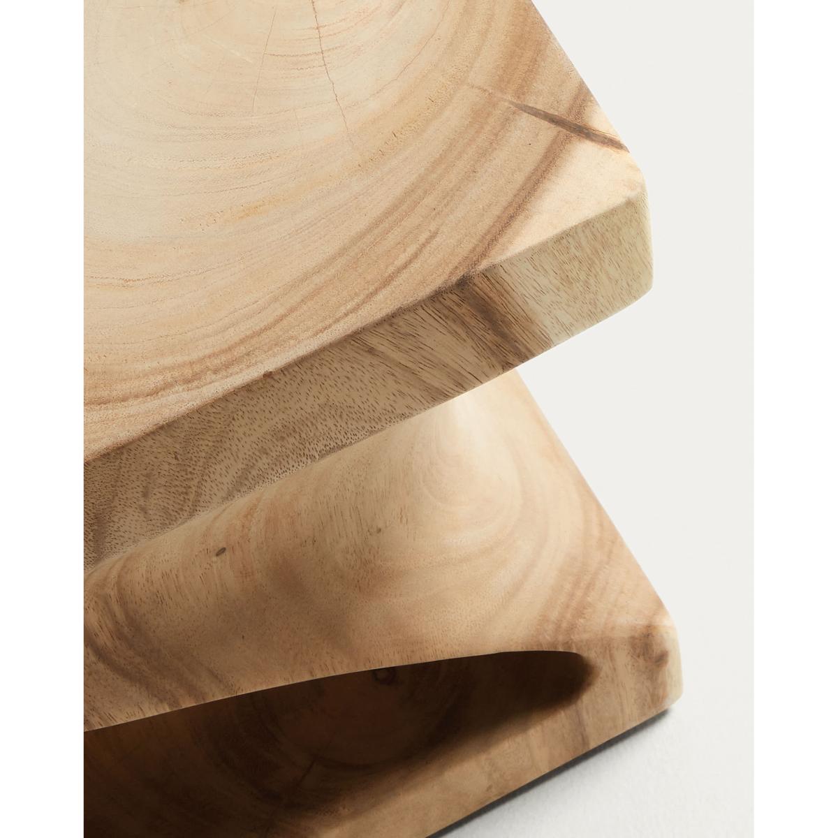 Hakon solid rain tree wood side table with carved interior, 30 x 30 cm