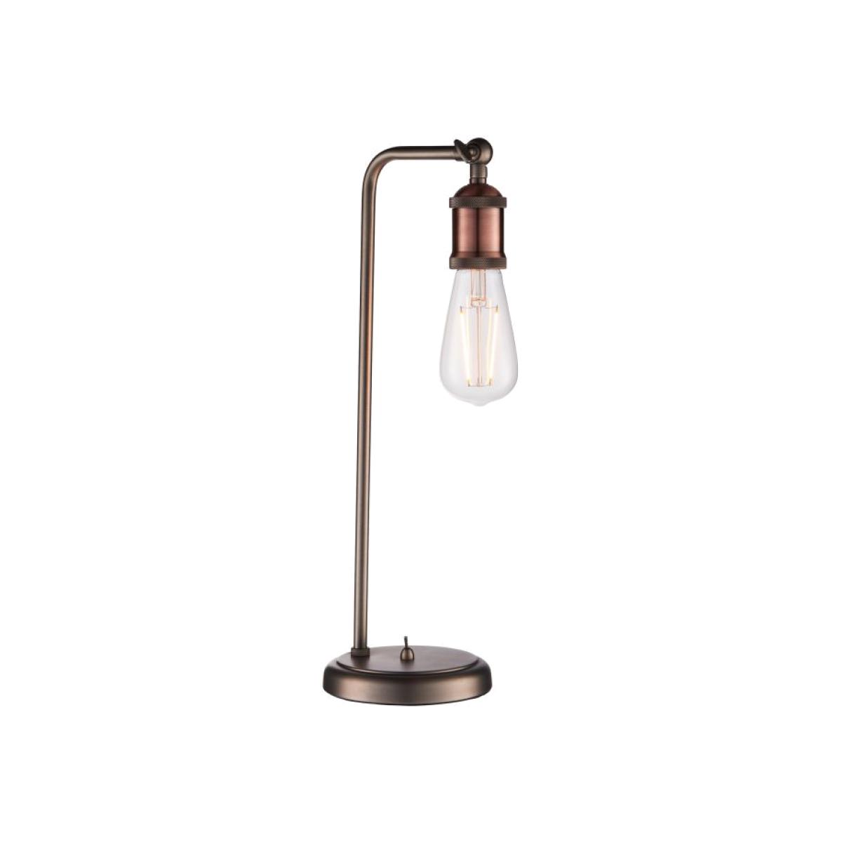 An industrial styled table light, finished in aged pewter and aged copper, making it bang up to date with on-trend 'resto' styling. Adjustable knuckles and knurled lamp holders complete the authentic look. Perfect when paired with filament LED lamps and easily controlled by a simple on/off base switch.