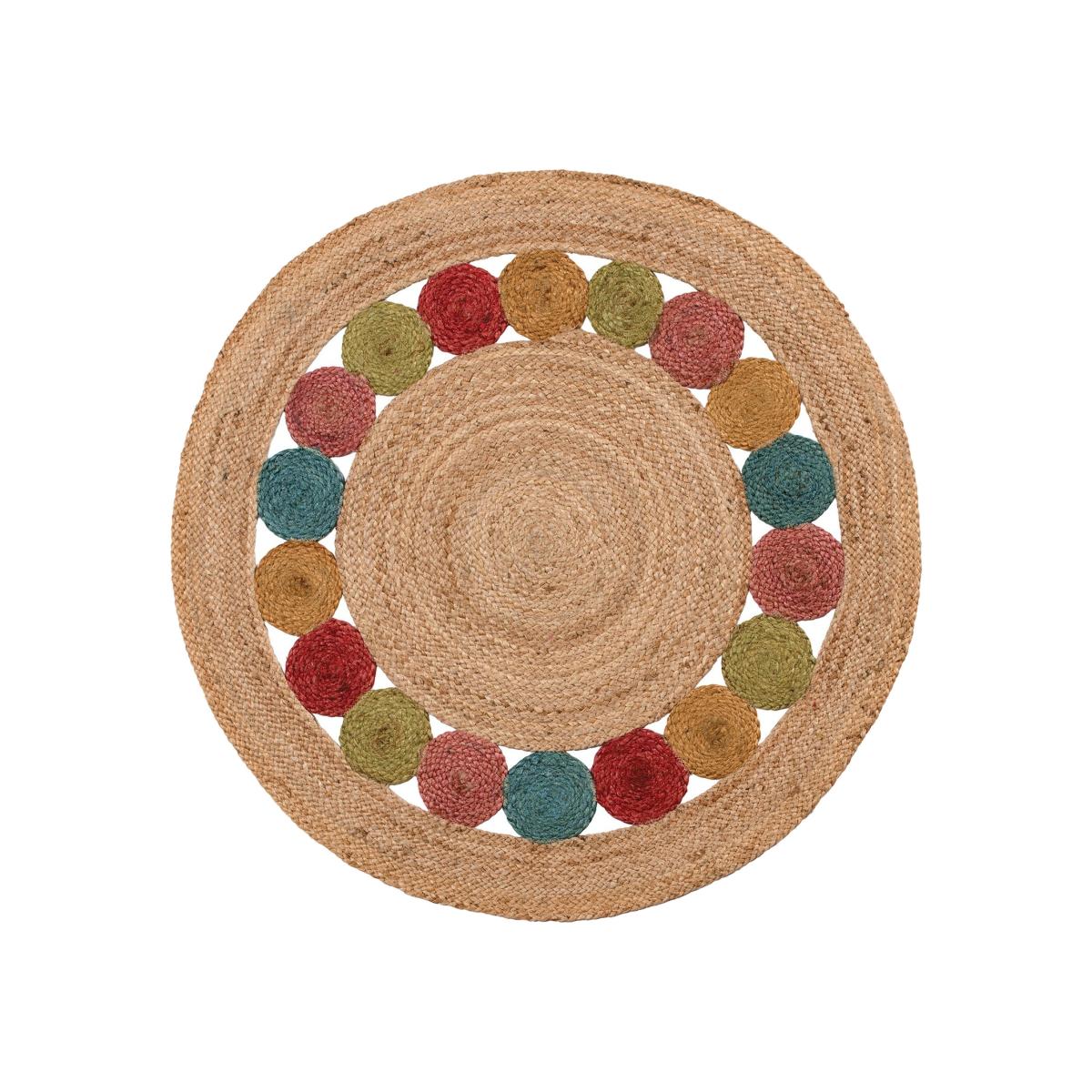 A brand new take on one of our best-selling ranges, this Halaka multi circle jute rug is beautifully contemporary while the border of coloured circles adds the perfect splash of colour. Made by a Good Weave accredited supplier, giving the best assurance that no child labour was used in the making of this product.