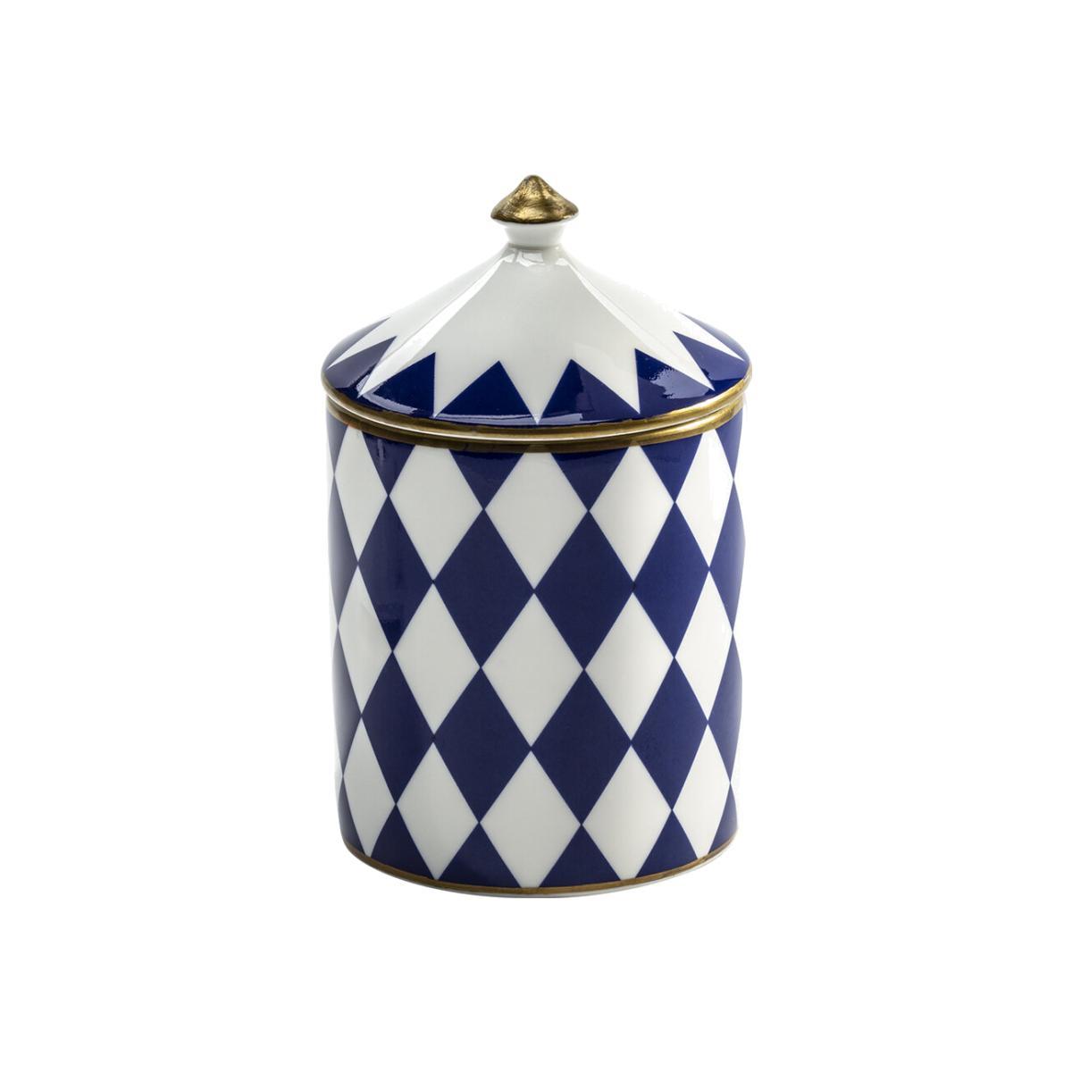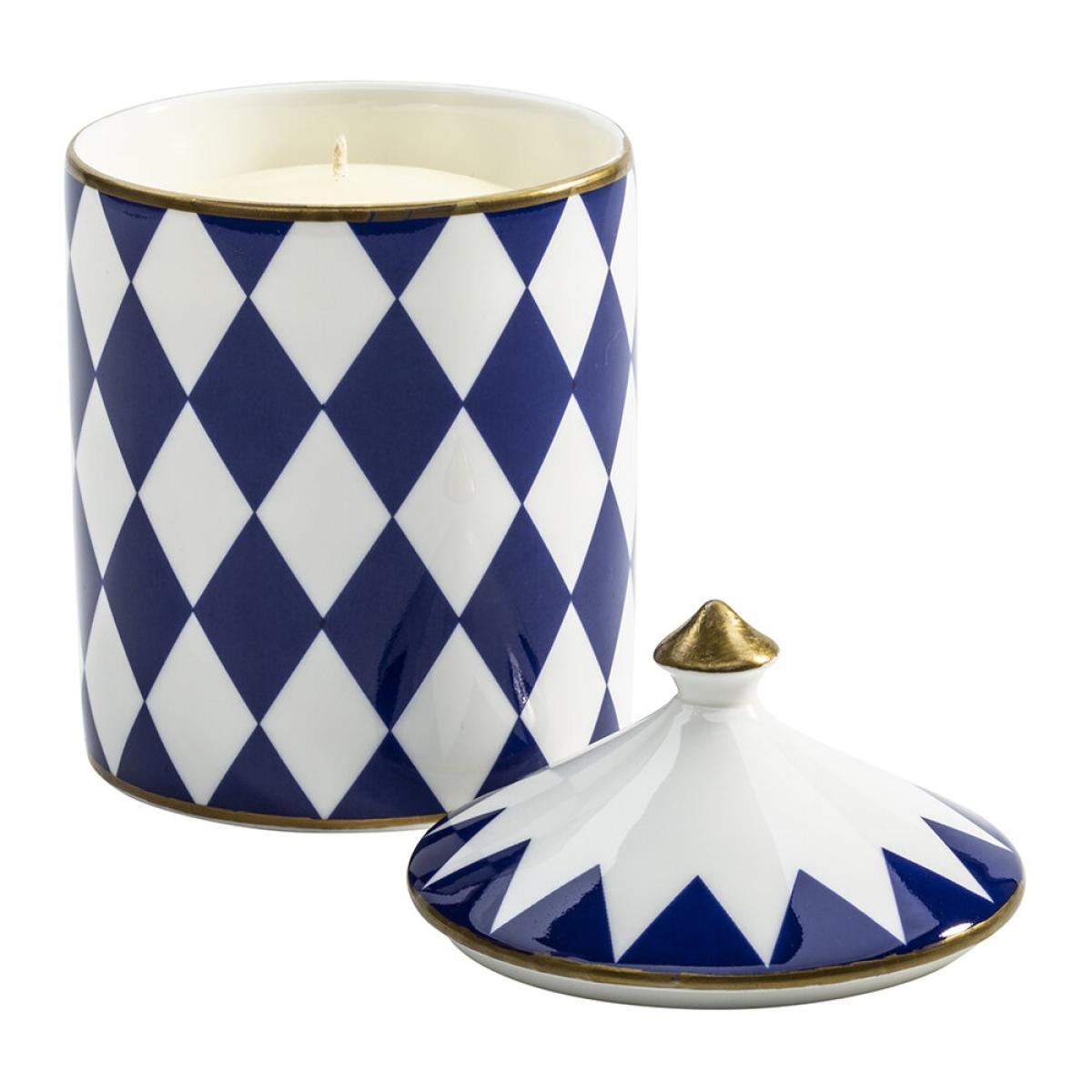 Fill your home with the delicate jasmine fragrance of this Parterre candle from Halcyon Days. Inspired by the symmetrical and geometric planting of gardens of the French renaissance, this fine bone china lidded candle features a beautiful harlequin pattern and golden accents.