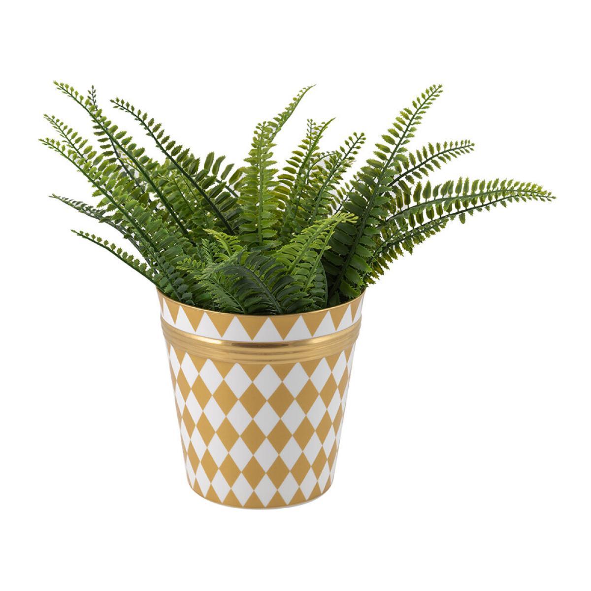 This large gold pot is a striking choice for adding a touch of elegance to any space. I love how it combines classic geometric patterns with a sophisticated metallic finish, making it versatile enough for both modern and traditional interiors. It works particularly well in more luxe or eclectic settings, where it can be styled with lush foliage or statement plants like palms or ferns. For practical styling tips, I recommend pairing it with a plant that has a substantial, textured leaf to balance the shiny finish, and placing it on a neutral base or a statement stand to elevate its visual impact. The size also makes it ideal as a standalone feature on a hall console or as a bold corner accent.