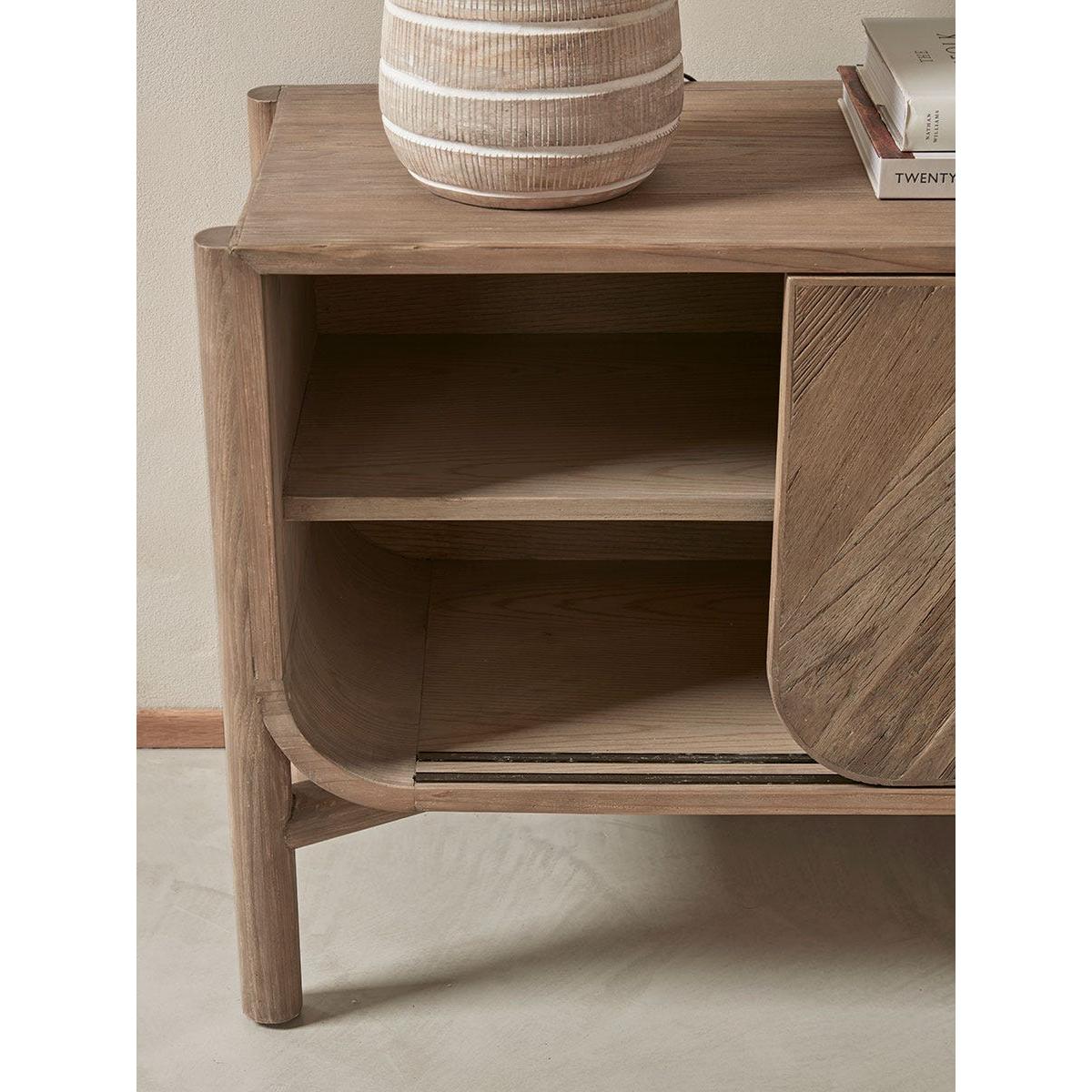 The beauty of natural wood has truly been allowed to shine in our Halden Media Unit where the tones of grain range from palest honey to grey on the diagonal striped parquet effect front. With a tubular wooden frame and softly rounded corners, this versatile piece will add character to a neutral scheme. Sliding doors make it a good choice for smaller rooms and ample storage space is available for hiding games consoles and other media equipment.