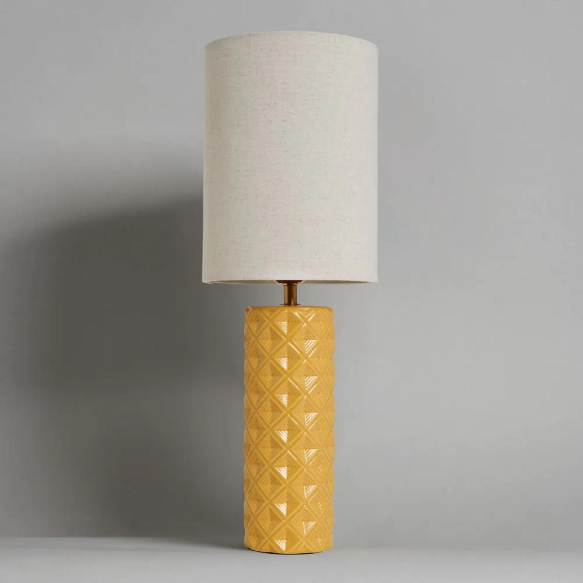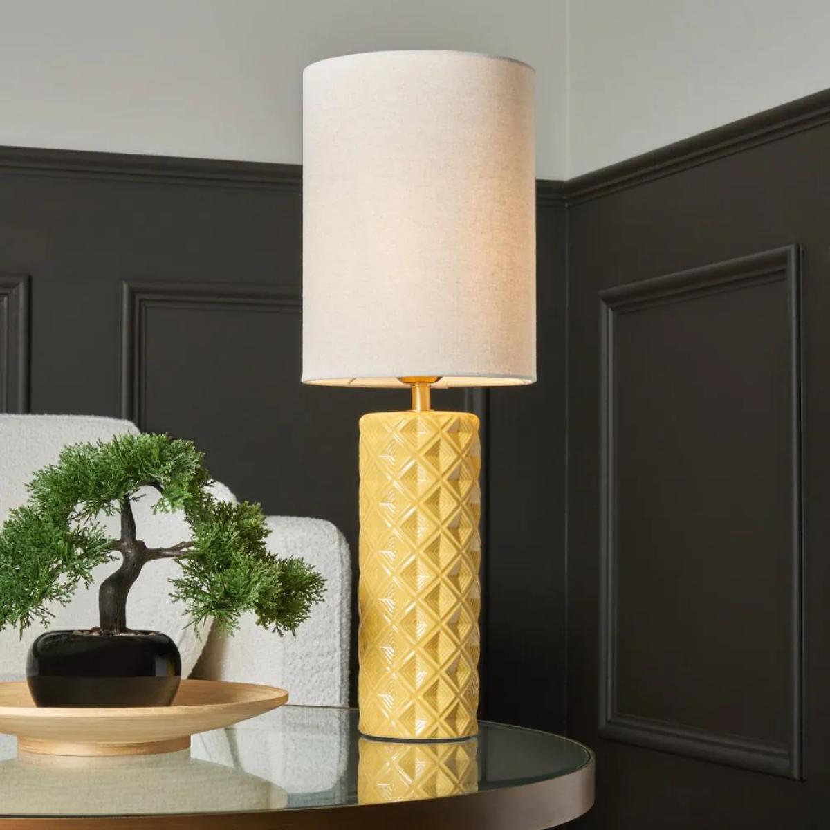 I really like this tall ceramic lamp for its vibrant yellow finish, which can instantly lift the look of a room. It works well in eclectic, retro-inspired interiors or as a playful pop of colour in more neutral spaces. Its sizeable height makes it ideal for sideline use on console tables, sideboards, or in a cosy reading nook. Practical styling tips include pairing it with contrasting textures such as wood or matt surfaces to highlight the smooth ceramic and bold colour. Keeping the surrounding accessories simple will let this lamp really stand out as a statement piece while providing functional ambient lighting.