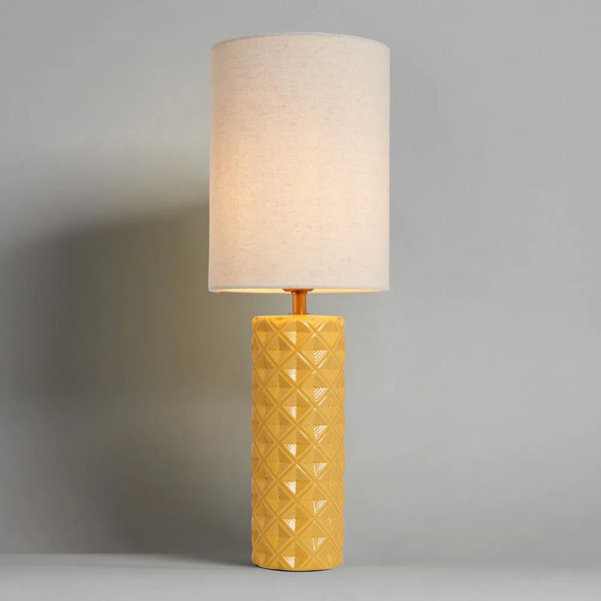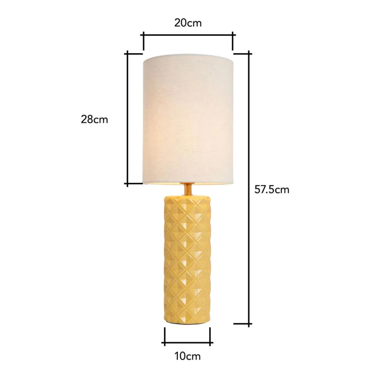Bring a pop of warmth and vibrancy into your home with the Halden Tall Ceramic Table Lamp in Yellow. The sleek, elongated ceramic base is finished in a radiant yellow tone, brightening up any space effortlessly. Topped with a tall neutral fabric shade, it balances boldness with elegance, offering a gorgeous diffused glow.