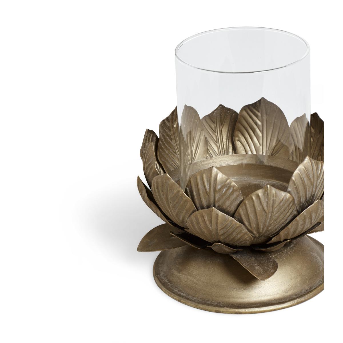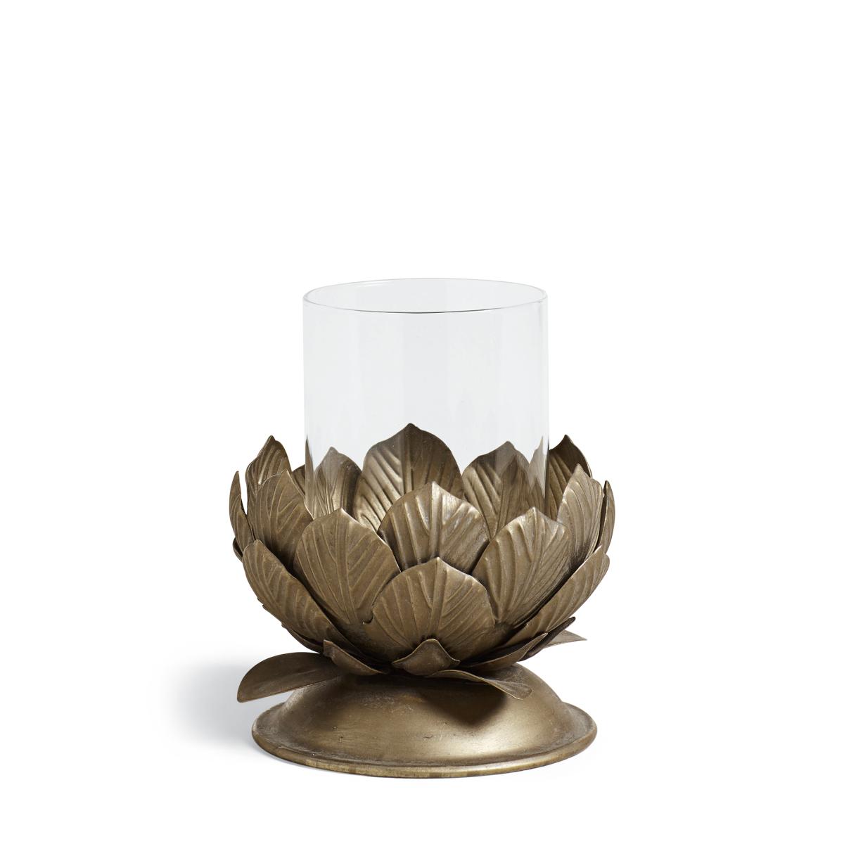 The Haldon strikes a balance between a floral and candlelight centrepiece, offering the beauty of both. Joining our original Haldon Candelabra, it holds a single tealight placed in a glass holder, which sits inside the iron flower. The design calls to mind enchanted forests and secret gardens and is hand-painted for an antique bronze effect.