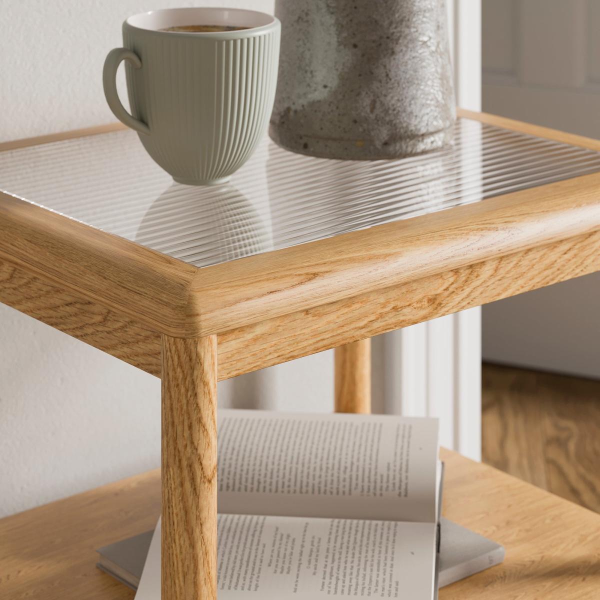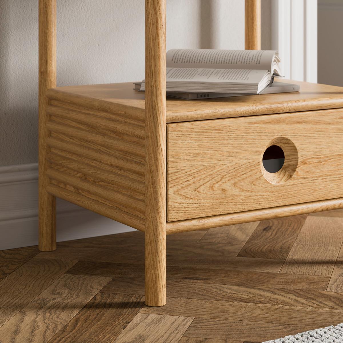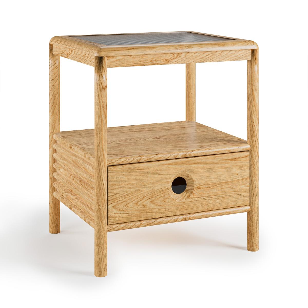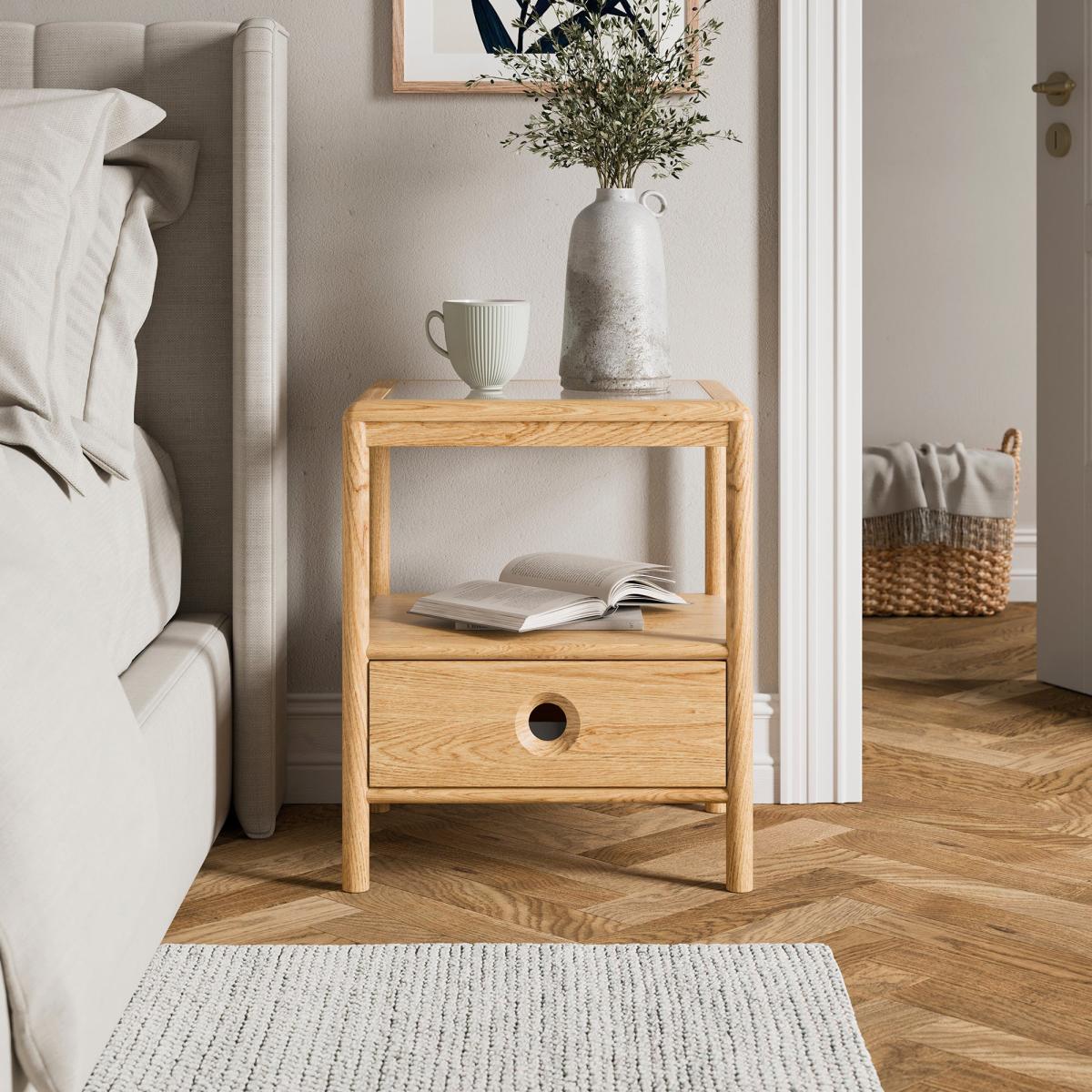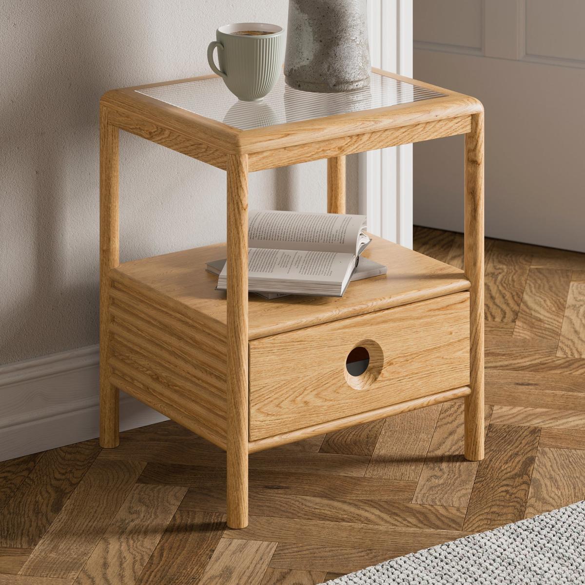 Hale 1 Drawer Bedside Table, Oak & Glass Natural