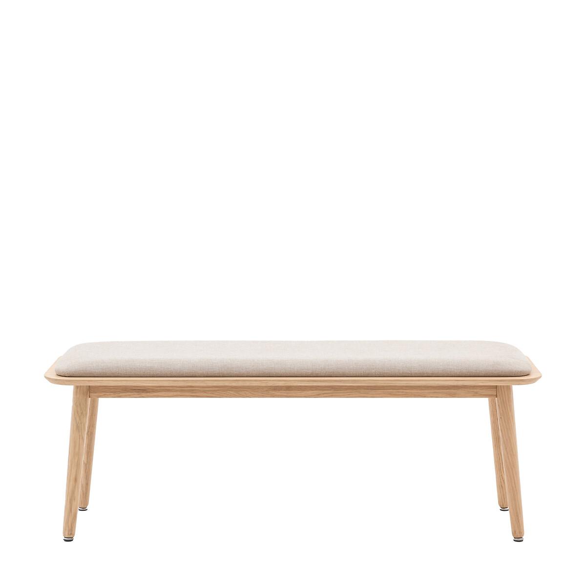 Scandi style, endless versatility. The Hale Oak Bench is the perfect blend of form and function—whether styled as a dining bench, hallway bench, or bedroom bench. With clean lines and a sleek silhouette, it’s designed to complement modern, minimalist interiors. Crafted with a sturdy oak veneer frame, its warm, natural wood grain brings texture and depth to your space. The neutral upholstered seat adds a soft contrast, enhancing both style and comfort. Whether placed at the dining table, at the foot of your bed, or as a statement piece in the hallway, this bench is as practical as it is effortlessly elegant. Product Details:• Seats 2• Linen upholstery seat pad with foam fillings• Solid wood legs• Natural honey finish• Full assembly required• 12 months manufacturers warranty. Product Composition - Oak Veneer MDF / Oak Veneer Rubber Wood / Fabric. Product Dimensions - 38 cm x 124 cm x 45 cm, Weight - 12.5 kg Clearance to floor 41.8cm. Package Dimensions - 130 cm x 44 cm x 14 cm, Weight - 15.5 kg. This product will be dispatched by one of our trusted suppliers. You’ll be contacted by their selected courier about your delivery. Please note: this product cannot be delivered to all Offshore Islands, Northern Ireland or Republic of Ireland.