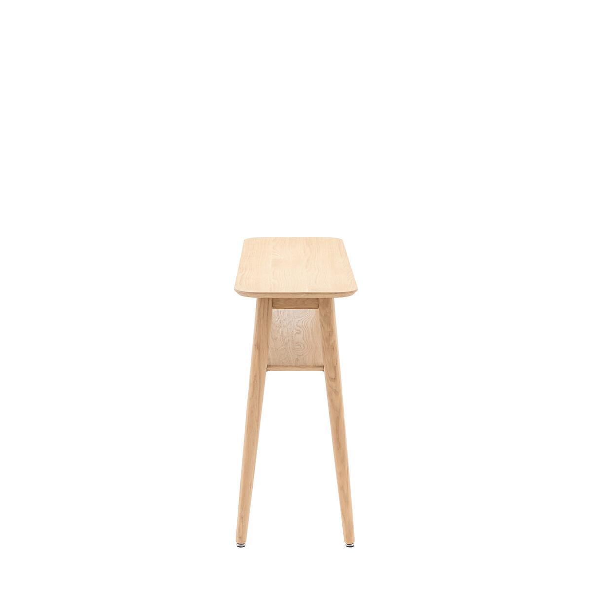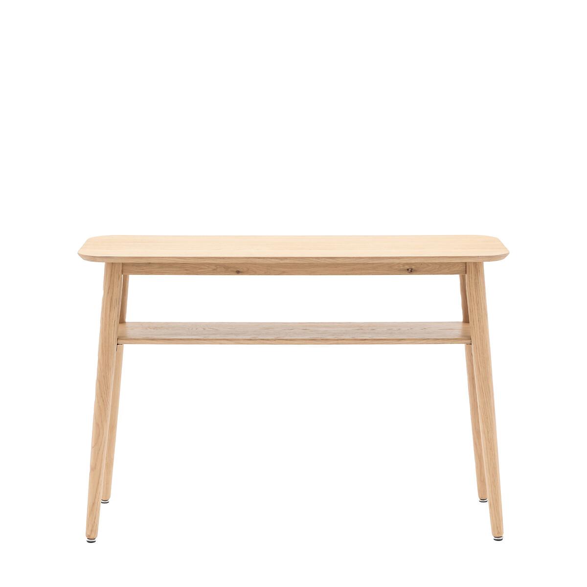 Scandi simplicity at its best. The Hale Oak Console Table is the perfect mix of style and function—ideal for elevating your hallway storage. Crafted from solid oak with a warm honey-toned finish, it brings natural texture and timeless appeal to your space. Designed with clean lines and a minimalist silhouette, it fits seamlessly into Scandinavian-inspired interiors. The additional shelf provides extra storage for everyday essentials, keeping your entryway effortlessly organised. Whether styled with décor or left sleek and simple, this console table is a must-have for a modern home. Product Details:• Oak and rubberwood construction• Natural honey oak finish• Additional storage shelf• Tapered solid wood legs• Partial assembly required (legs/feet)• 12 months manufacturers warranty. Product Composition - Oak Veneer MDF / Oak Veneer Rubber Wood. Product Dimensions - 35 cm x 110 cm x 75 cm, Weight - 12 kg Clearance to floor 75.2cm. Package Dimensions - 116 cm x 41 cm x 14 cm, Weight - 14.5 kg. This product will be dispatched by one of our trusted suppliers. You’ll be contacted by their selected courier about your delivery. Please note: this product cannot be delivered to all Offshore Islands, Northern Ireland or Republic of Ireland.