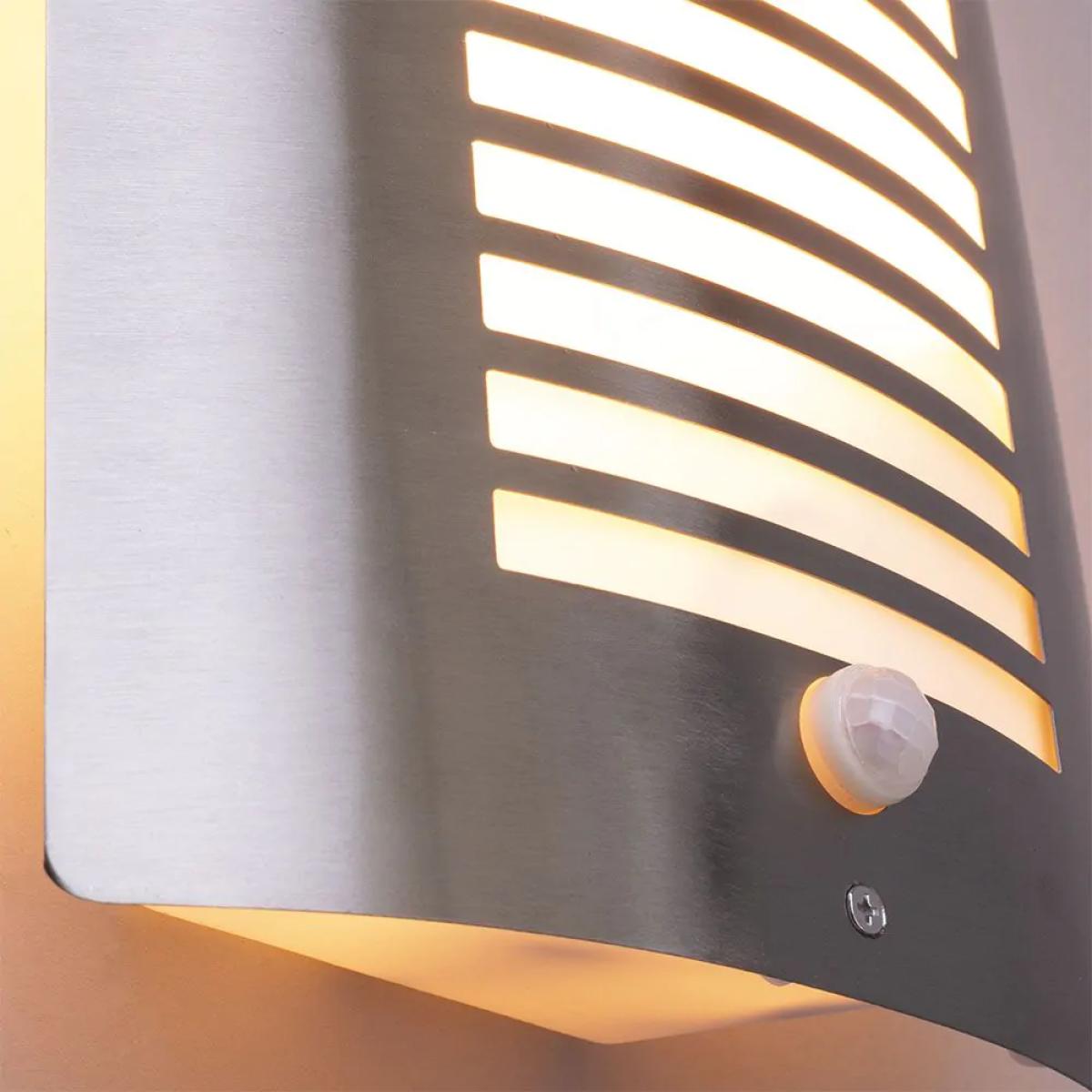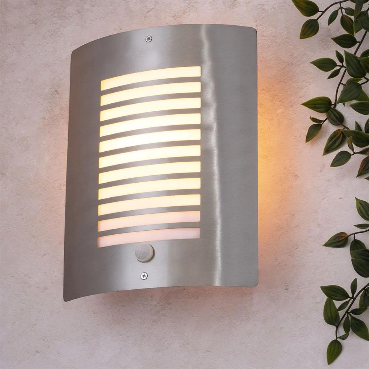 I love this wall light for its modern, sleek stainless steel finish and its practical design. The slatted panel adds a contemporary touch that complements minimalist and industrial exteriors alike, while the PIR sensor ensures energy efficiency by activating only when needed. It works well in various outdoor settings, from modern townhouses to rustic gardens, providing functional illumination without overpowering the landscape. For styling, consider pairing it with other stainless steel or neutral-toned fixtures to create a cohesive look. Additionally, positioning it near entrances or pathways enhances safety and curb appeal, making it as much a design feature as a practical solution.
