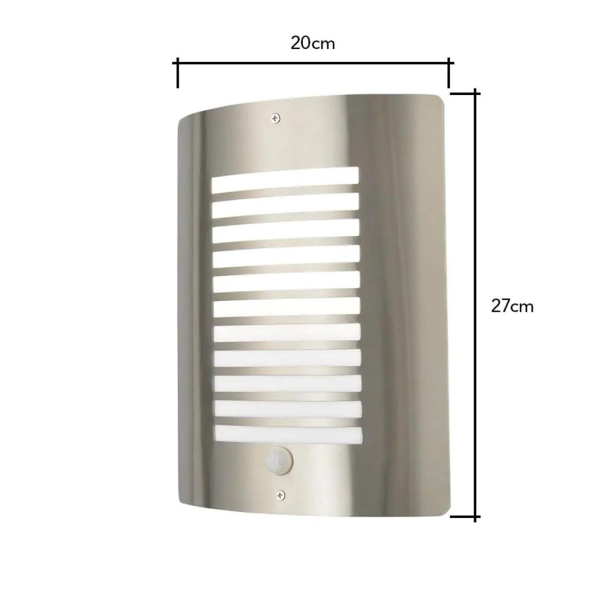 Add an urban styling touch to the exterior of your house with the Hale Panel Slatted Wall Lantern. Finished in a gorgeous stainless steel effect, this lantern projects a fantastic pattern of light onto your outdoor spaces making it ideal for modern households. It also features a PIR sensor which detects movement outside your house, instantly triggering the light to switch on for maximum convenience when using your outdoor spaces.
