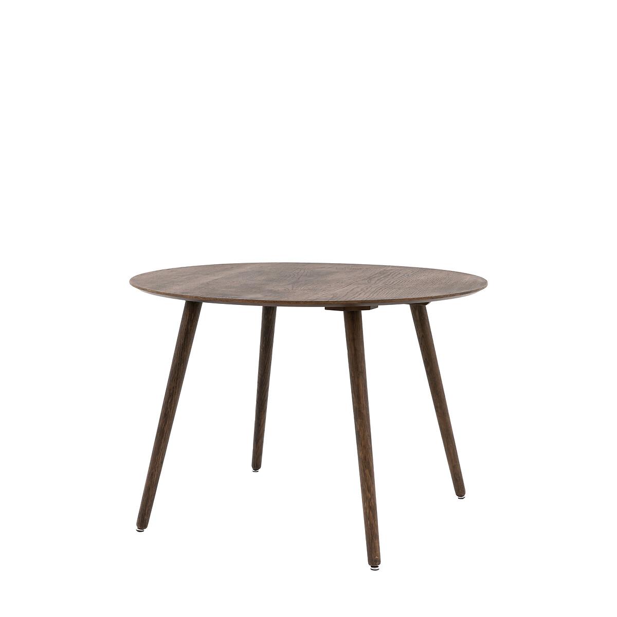 Offering retro style with a contemporary touch, this beautiful round dining table is crafted from oak veneers and rubberwood with a smoked oak finish. The table is also available in a natural finish, and matching pieces are available. Product Details:• Solid rubberwood with oak veneer finish• Seats 4 people• Table length 110cm• Clearance to floor 75.3cm• Partial assembly required• 1 year manufacturers warranty. Product Composition - Oak Veneer MDF 65% / Oak Veneer Rubber Wood 35% Product Dimensions - 117 cm x 117 cm x 11 cm, Weight 21.5 kg. Package Dimensions - 117 cm x 117 cm x 11 cm, Weight - 21.5 kg. This product will be dispatched by one of our trusted suppliers. You’ll be contacted by their selected courier about your delivery. Please note: this product cannot be delivered to all Offshore Islands, Northern Ireland or Republic of Ireland.