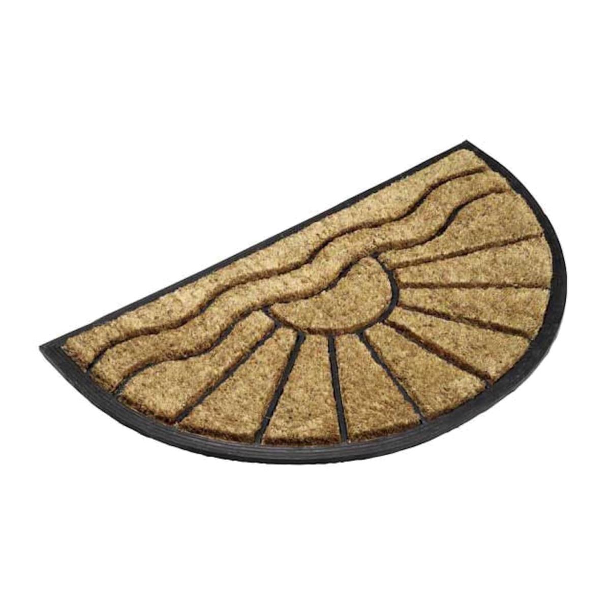 With a half moon shape, sunrise inspired pattern, and hard wearing coir, this rubber mat sits comfortably outside your front or back door.
