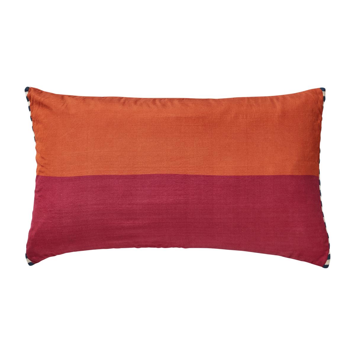 Half Stripe Silk Cushion Cover - Orange / Raspberry