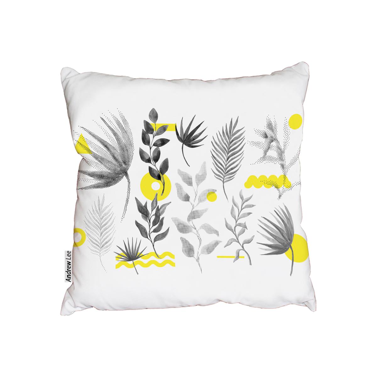 Halftone Floral , Juxtaposed Bright Bold Leaves Foliage Outdoor Cushion - Yellow