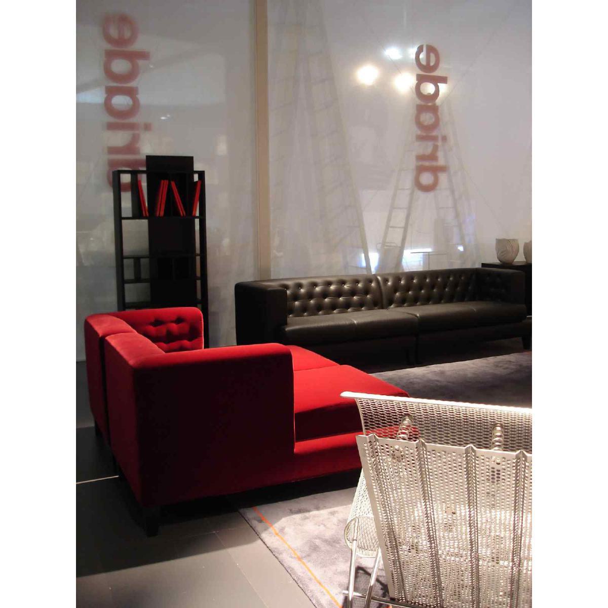 Magnificent sofa of Rodolfo Dordoni. Elegancy of the surface sets up in padded leather, feet in wood, this 3 places sofa is extremist refined! Is declined in white, black or Havana.