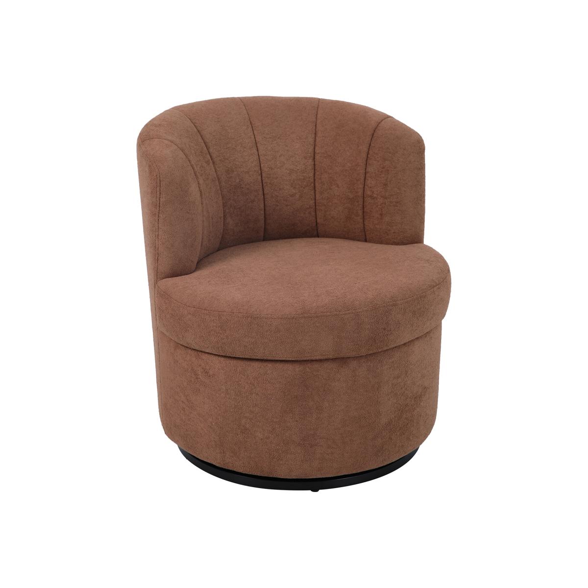 I’ve been using this brown swivel chair for its clean, curved lines and warm, matt-fabric finish - perfect for modern, mid-century or relaxed Scandi schemes. Its compact size works well in tight living rooms, home offices or as a cosy reading spot in a bedroom, and the swivel base adds just enough movement without overwhelming the space. For styling, position it beside a slim metal or marble-top side table and layer a neutral wool throw over the back to introduce subtle texture. A single accent cushion in a contrasting colour - think muted teal or soft ochre - will lift the look, while a low-pile rug beneath helps define the area without hiding the chair’s elegant base.