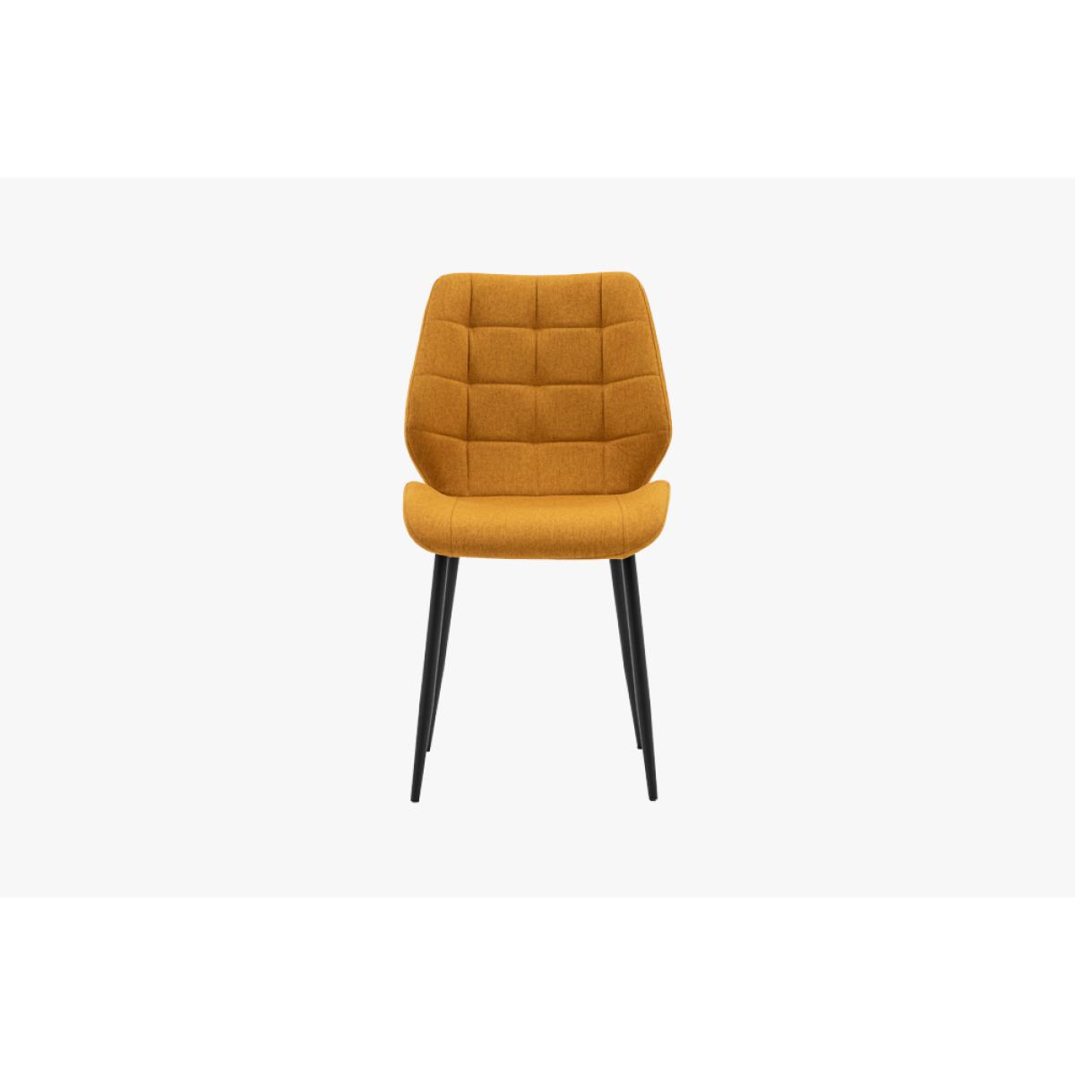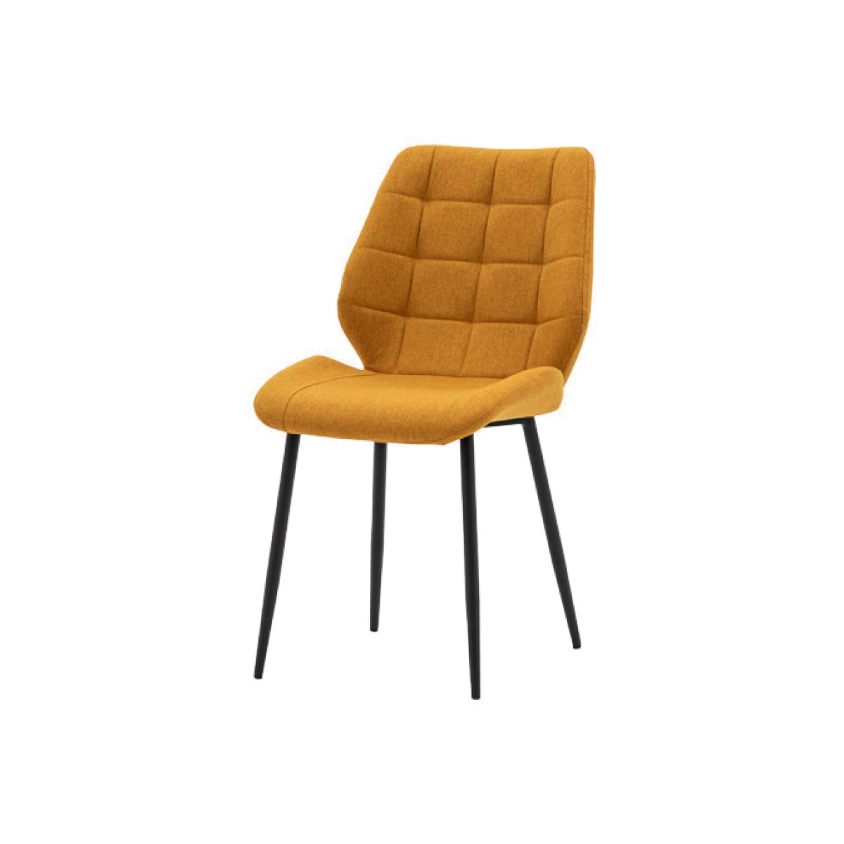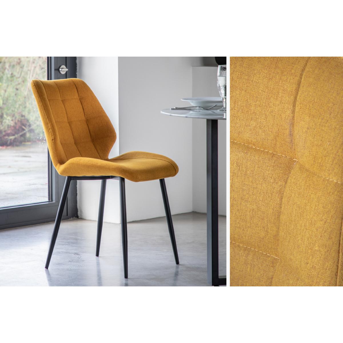 I’m a fan of the saffron dining chair for the way its warm, ochre-toned upholstery lifts a neutral scheme without overpowering it. The slim black metal legs and quilted seat back give just enough texture to suit both modern Scandi and pared-back industrial interiors. Pair these chairs with a light oak table and introduce small black accessories (vases or candlesticks) to echo the leg finish. In a kitchen nook, soften the look with a neutral runner and a couple of green potted plants. They’re lightweight enough to reposition easily, and the fabric wipes clean, making them as practical as they are eye-catching.