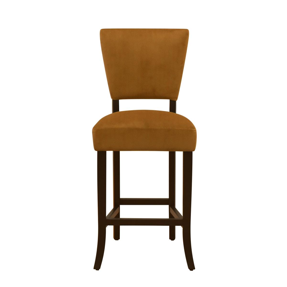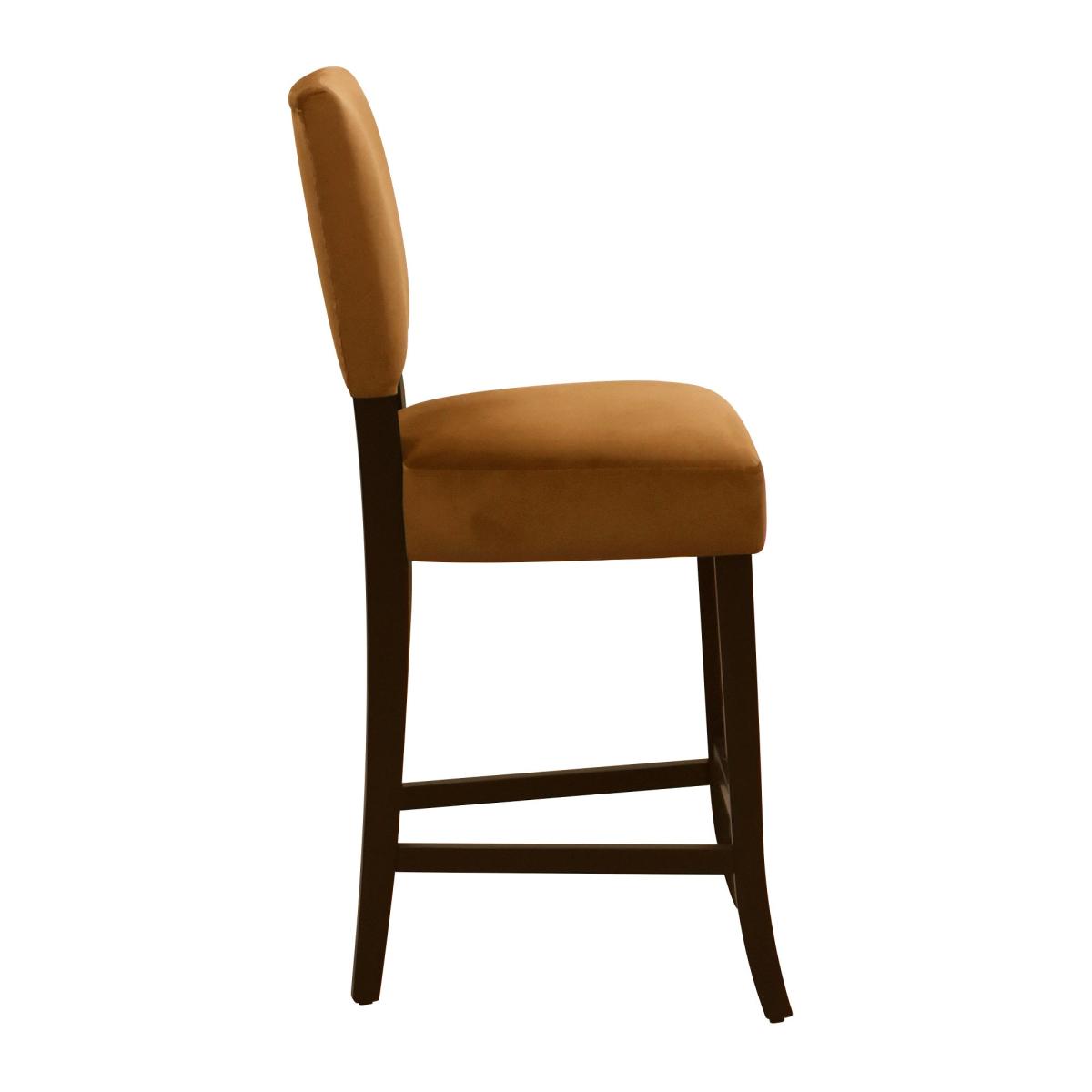I love the amber gold finish of this bar stool - it adds a warm, inviting touch to any space. It works particularly well in contemporary or mid-century inspired interiors, where the rich hue can serve as a statement piece or complement other warm-toned accents. For styling tips, consider pairing it with a natural wood or brass-toned bar table to enhance its luxe look. Practicality-wise, its comfortable upholstery and sturdy build make it ideal for both everyday use and entertaining. To keep things cohesive, try incorporating similar amber or gold accents in lighting, accessories, or textiles around your kitchen or bar area.