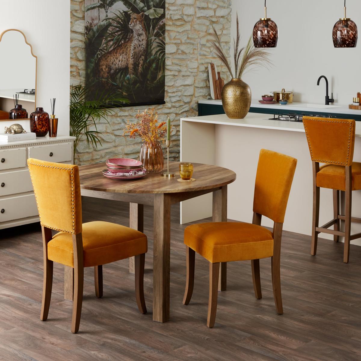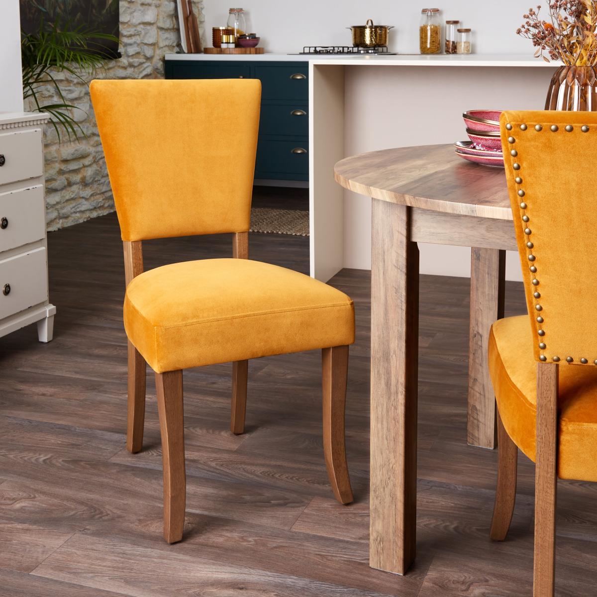 I love this yellow dining chair for adding a pop of colour and warmth to various interior styles. It works particularly well in both modern and eclectic settings, where a lively touch is welcome, or in more traditional spaces seeking an energetic accent. Its amber gold tone is versatile enough to pair with neutral tones and wooden dining tables, creating a cosy yet stylish dining area. When styling, consider keeping the surroundings simple to let the chair stand out, or combine it with other colourful accessories to create a vibrant, inviting atmosphere. Practical tips include opting for matching or contrasting tableware to enhance its colourfulness and using a protectant on the upholstery for easy maintenance, especially in busy households.