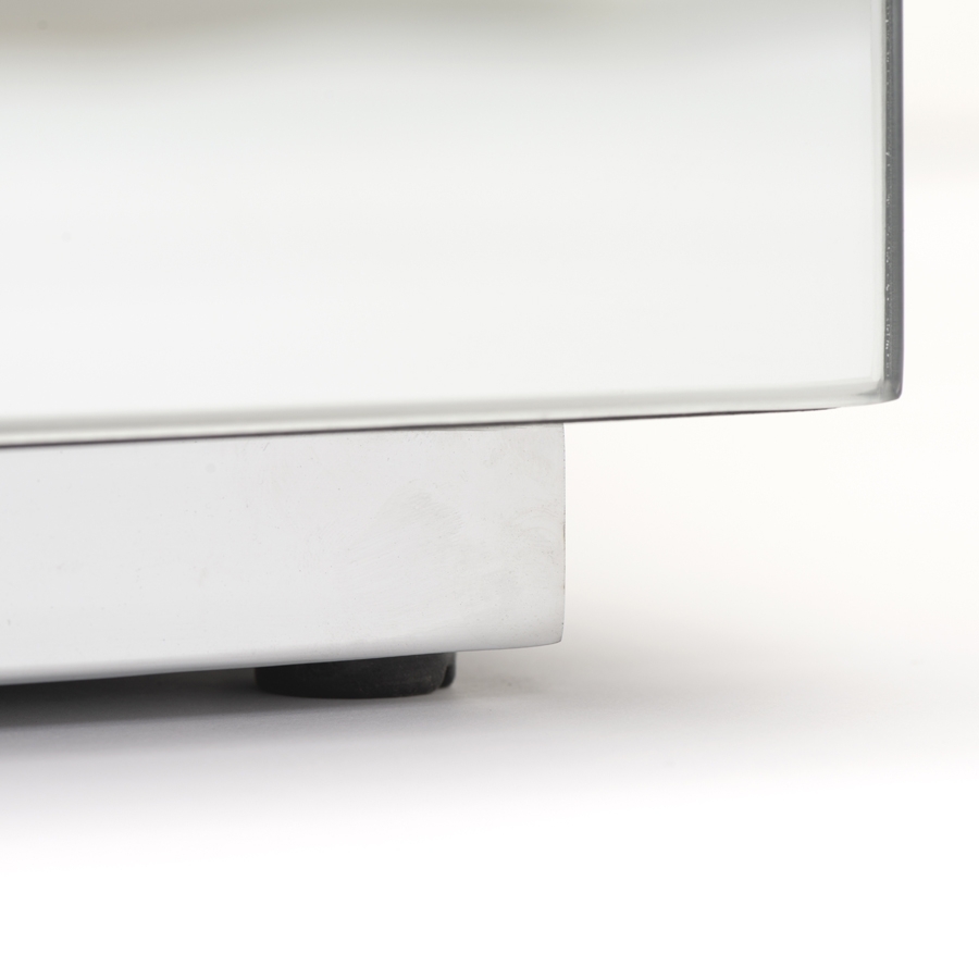 Timeless and elegant, this graceful table will co-ordinate with any style interior. Extremely strong toughened mirror. Stainless steel plinth with mirror polished finish.