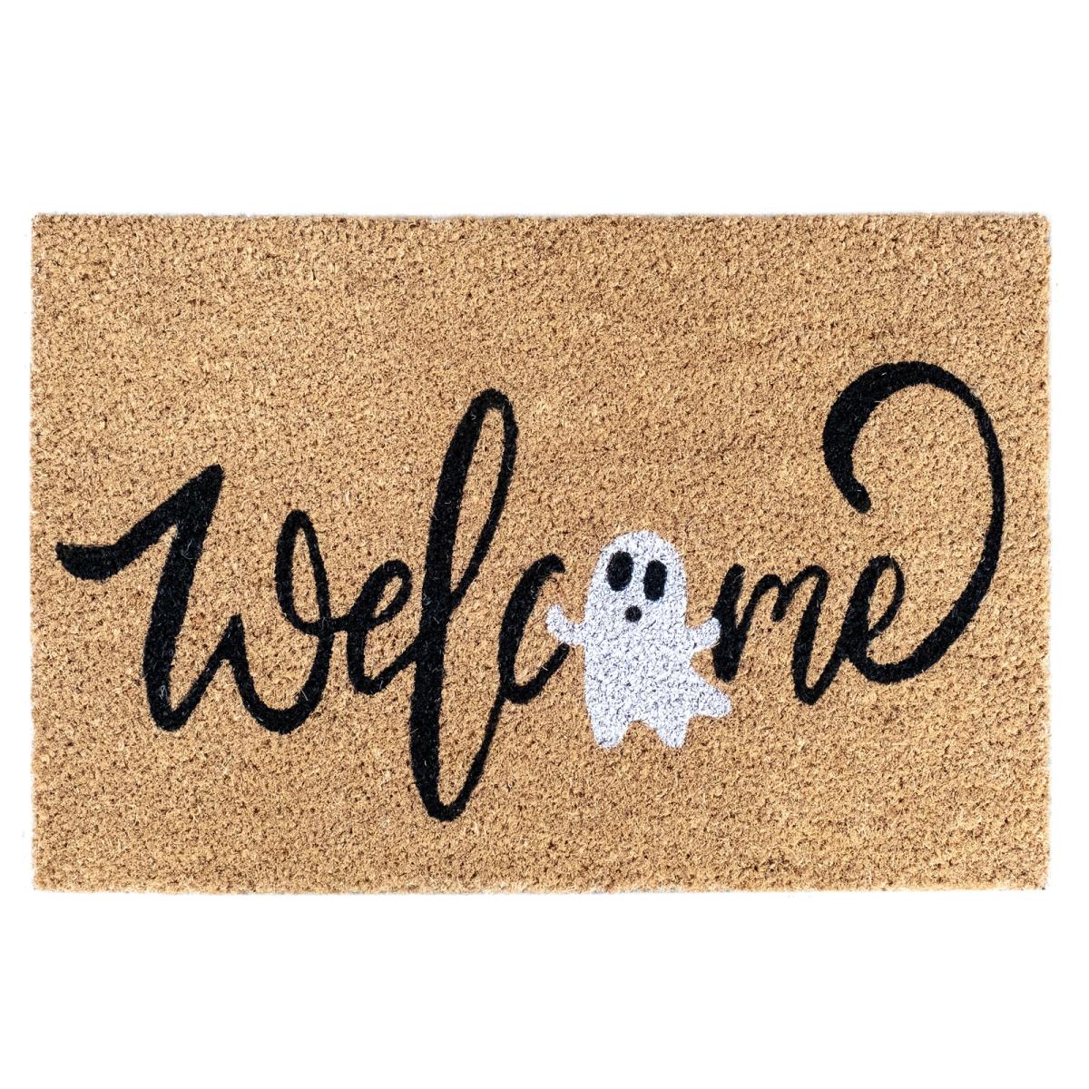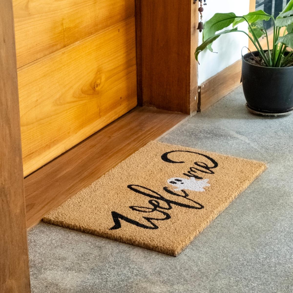 Welcome family, friends and trick-or-treaters with this fun natural coir doormat. Anti-skid PVC backing.