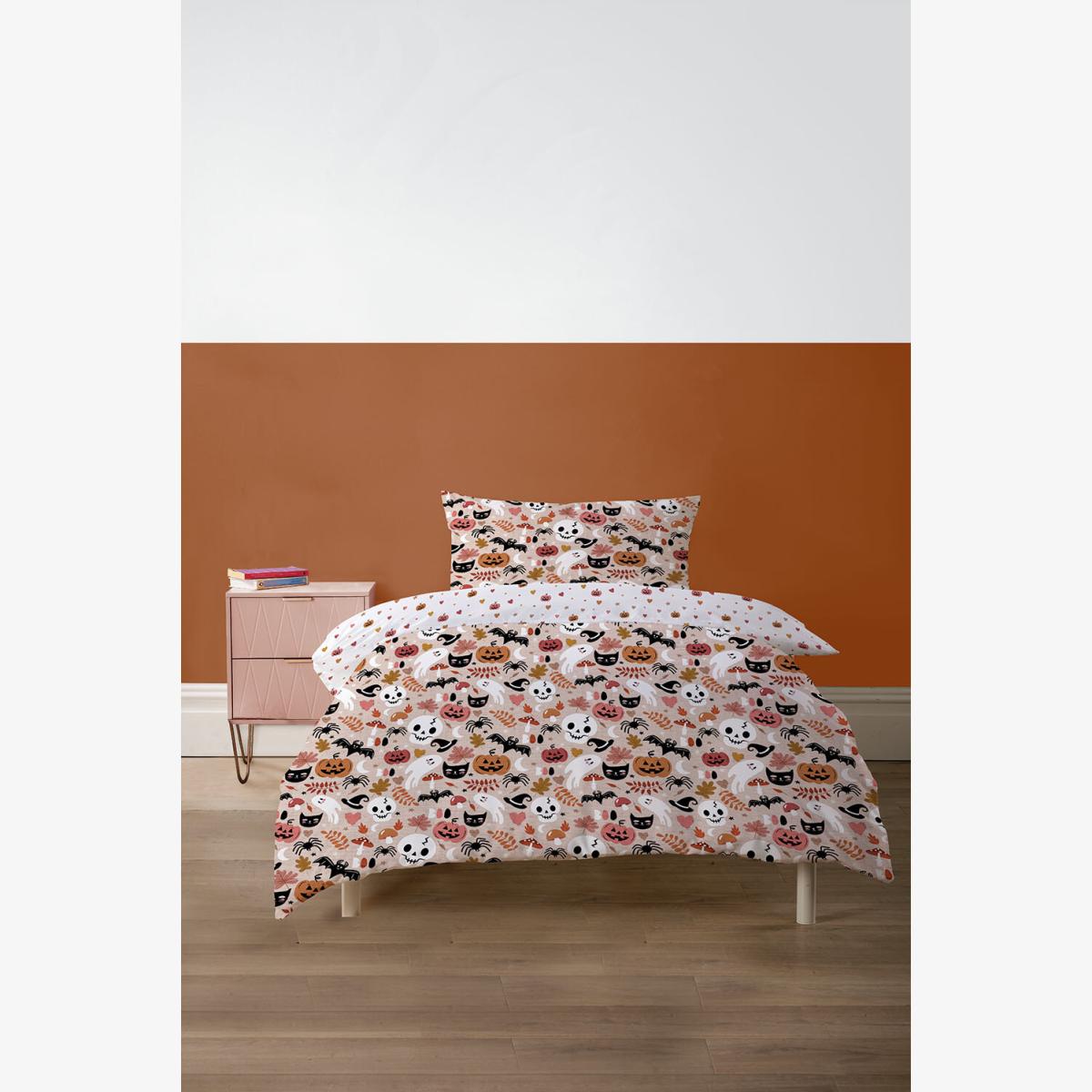 Add a touch of eerie to your beds with this Halloween Icons Duvet Set. This stunning duvet features a spooky yet adorable design that is sure to impress anyone. Soft and comfortable, it is made using polyester to ensure to indulge in a cosy night's sleep. Easy to care for, the duvet is machine washable for hassle-free maintenance.