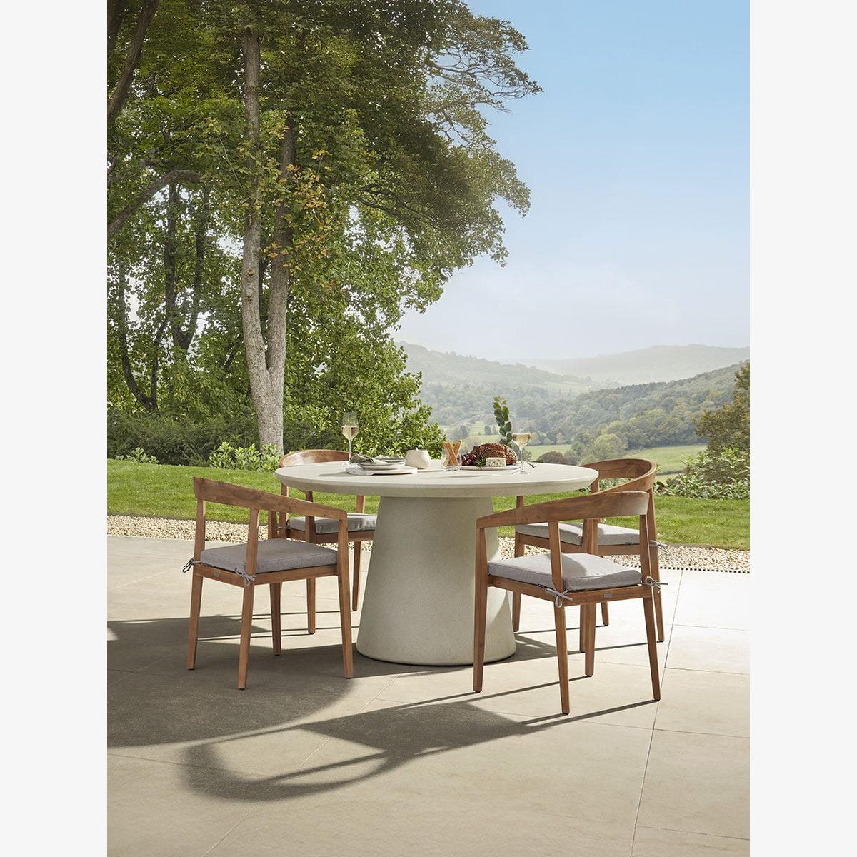 This garden table's clean, contemporary design makes it a versatile choice that works well in both modern and classic outdoor spaces. I love how its simple silhouette provides a sleek, understated foundation that can be styled effortlessly with a variety of chairs, tableware, or centrepieces. It’s practical for al fresco dining, but also looks great in a covered terrace or courtyard. To get the most out of it, consider pairing with woven or wooden chairs for a relaxed, natural look, or add colourful cushions and table settings for a more vibrant, inviting atmosphere. Its neutral tone makes it easy to incorporate into different colour schemes and garden styles, ensuring it remains a versatile staple in your outdoor interior.