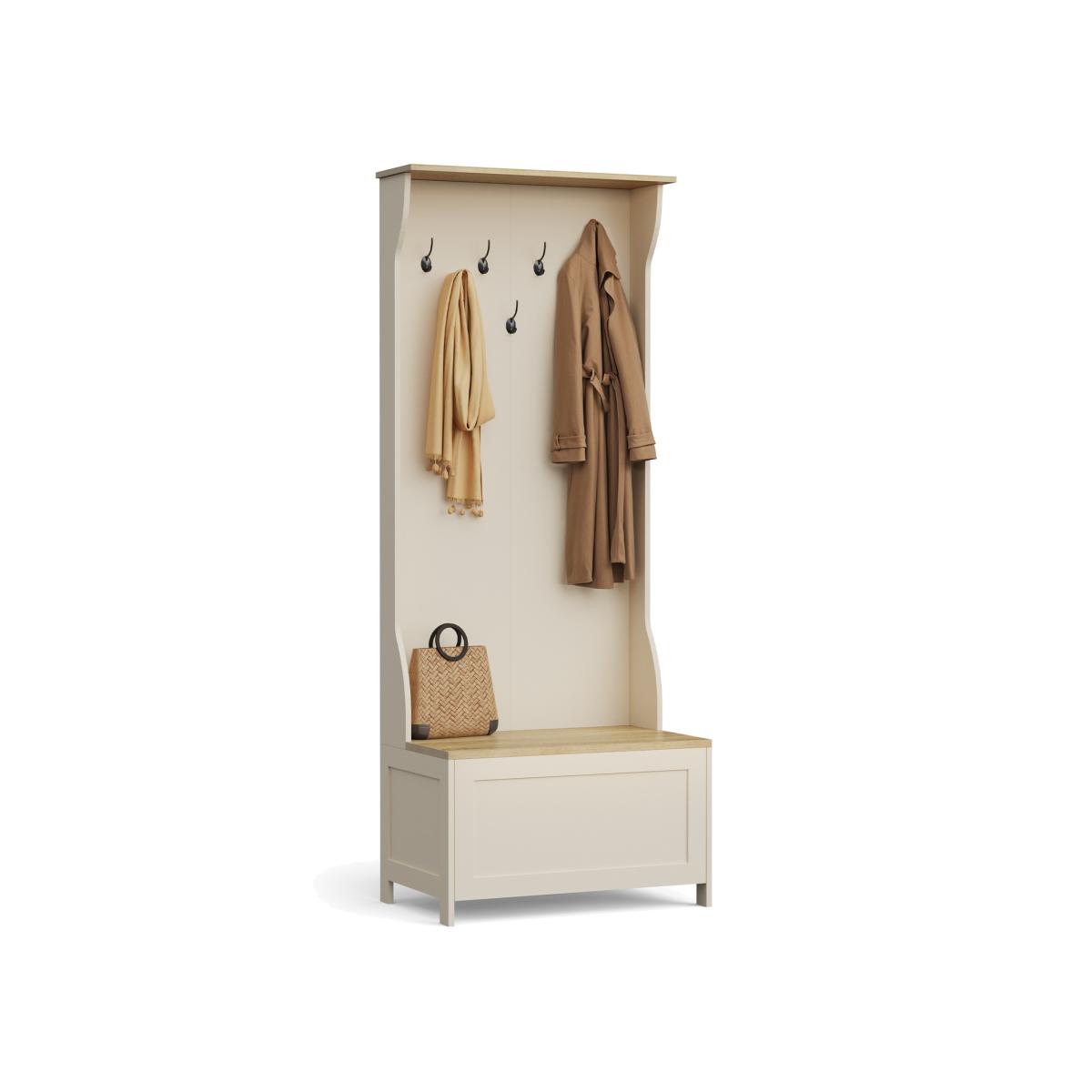 Add a dash of country charm to your space with the Von Haus coat rack with shoe storage, featuring an off-white colourway and rustic wood-effect accents, perfect for cosy homes and modern interiors alike. More than stylish hall storage, the anti-tip hardware makes it a practical addition to any home. Give your coats, jackets, and on-the-go items a stylish new home with this 3-in-1 hall tree. The lid lifts to reveal a spacious storage compartment, ideal for keeping shoes neatly tucked away for a clutter-free look. When closed, it doubles as a convenient bench to sit on while putting on your shoes. As for your coats, we've included seven dual hooks that provide plenty of storage space for the whole family's coats, scarves, bags, and more. Declutter your hallway in characterful style today.